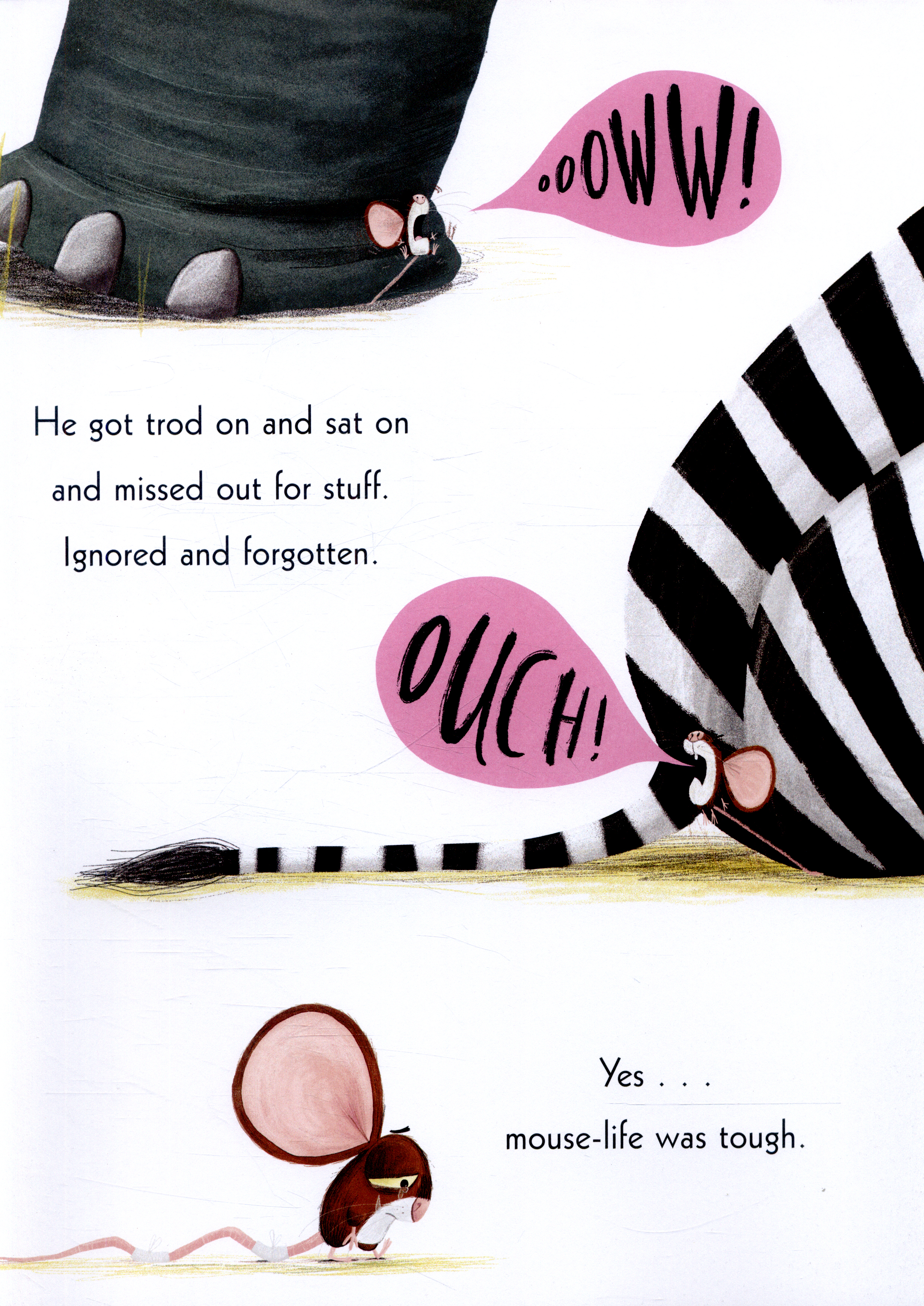 A bestselling story about confidence, self-esteem, and a shy little mouse who sets out on a journey to find his roar. In a dry dusty place where the sand sparkled gold, stood a mighty flat rock, all craggy and old. And under that rock in a tinyful house, lived the littlest, quietest, meekest brown mouse. Fed up of being ignored by the other animals, Mouse wishes he could roar like Lion.