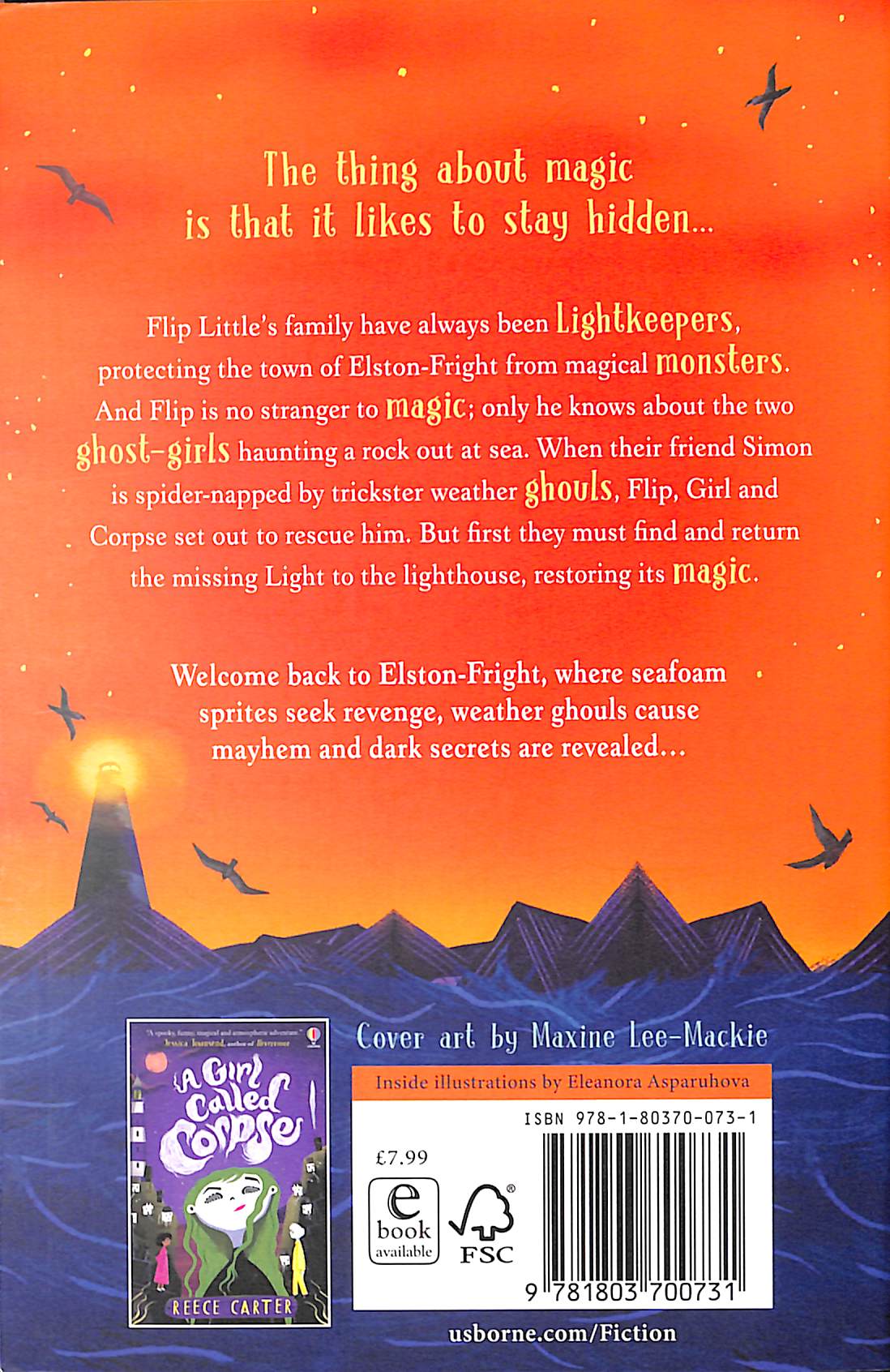 The thing about magic is that it likes to stay hidden... Flip Little's family have always been Lightkeepers, guardians sworn to protect the town of Elston-Fright from magical, monstrous threats. And Flip is no stranger to magic; only he knows about the two ghost-girls haunting a rock out at sea. When their spider friend, Simon, is spider-napped by ancient Poltergusts, weather ghouls out to cause mayhem, Flip, Girl and Corpse set out to rescue him.