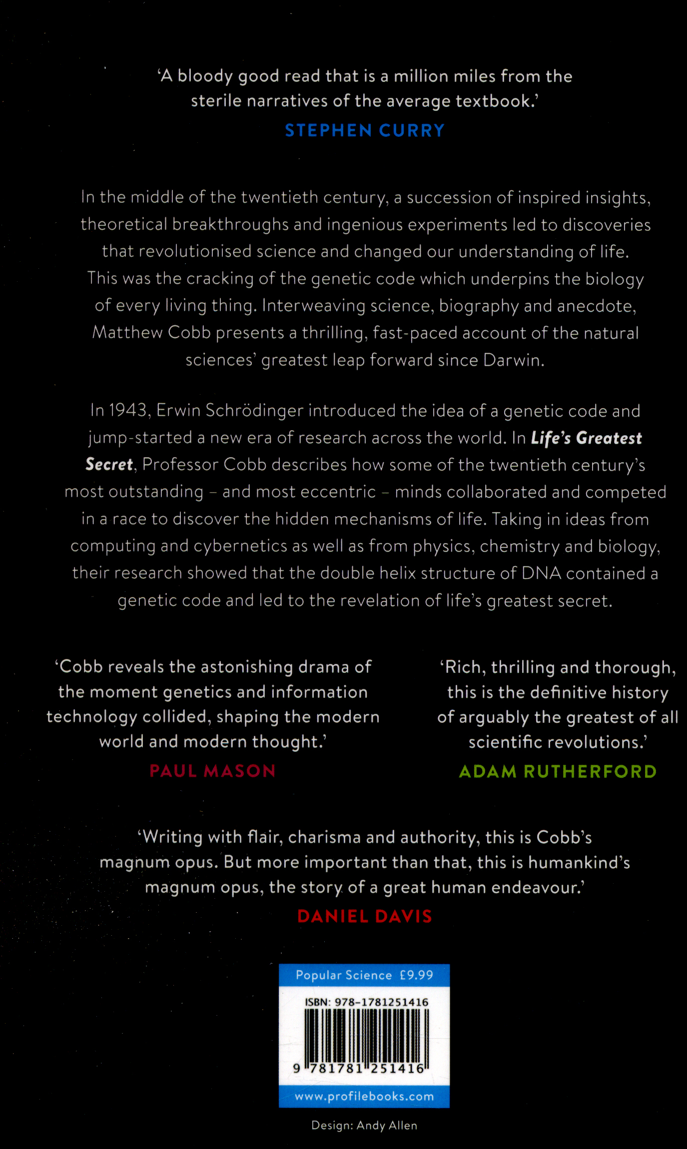 Life's Greatest Secret by Cobb, Professor Matthew (9781781251416) | Browns Books