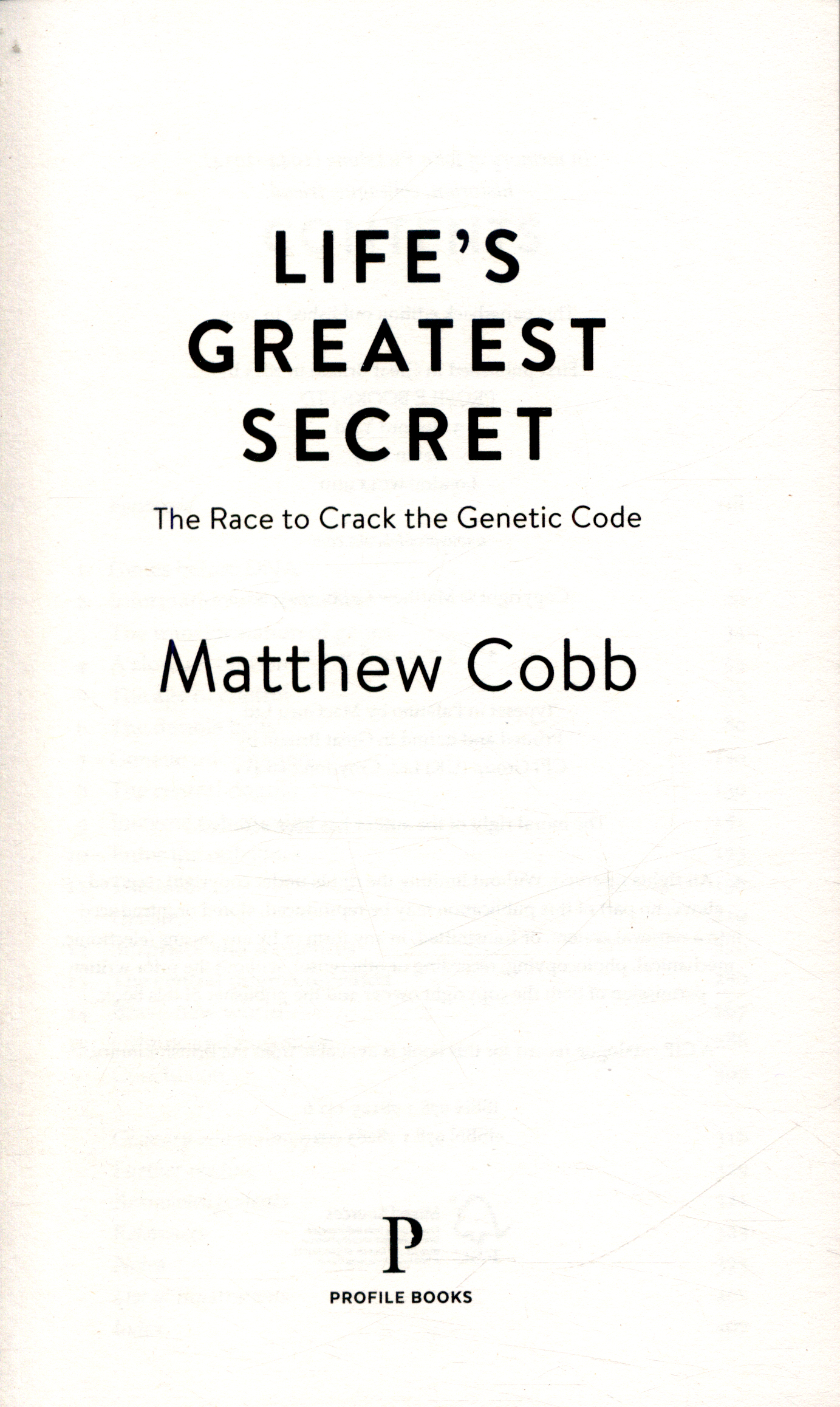 Life's Greatest Secret is the story of the discovery and cracking of the genetic code.