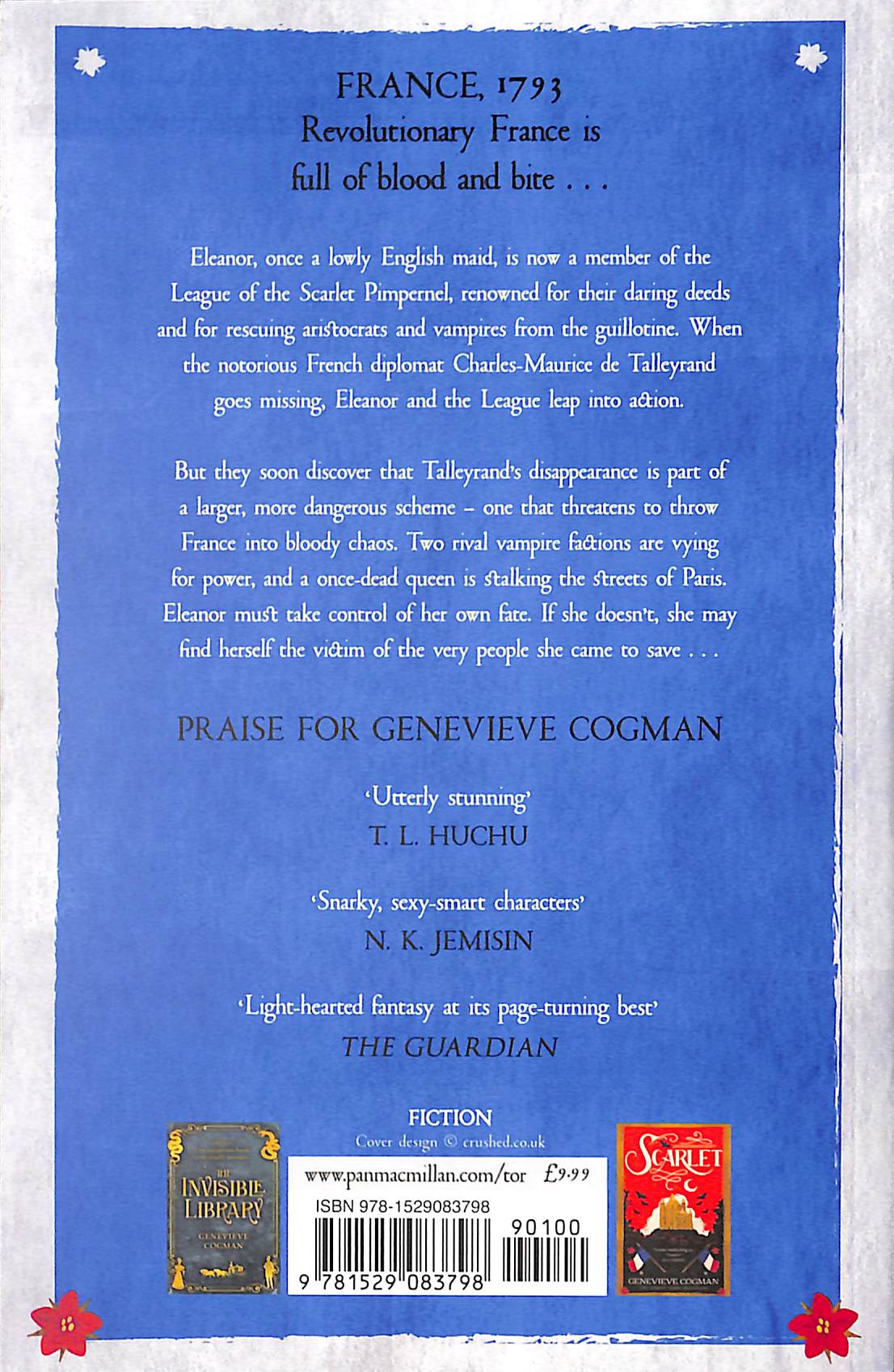Featuring Genevieve Cogman’s trademark wit and fast-paced plotting, Elusive is the second book in the Sunday Times bestselling Scarlet Revolution trilogy. Eleanor, once a lowly English maid, is now a member of the League of the Scarlet Pimpernel, known for their daring deeds and rescuing aristocrat vampires from the guillotine. Eleanor and the League are investigating the disappearance of Charles-Maurice de Talleyrand, the notorious French statesman and diplomat.