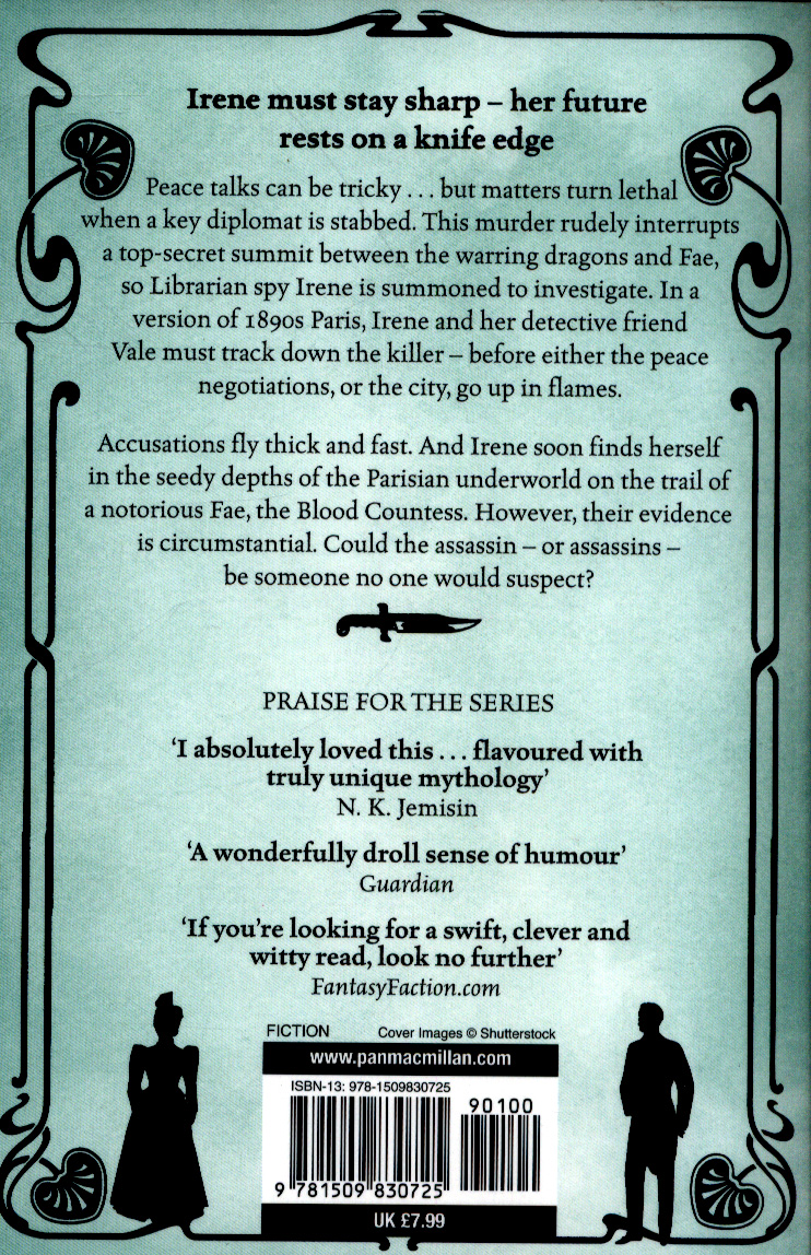 With her detective friend Vale, she must track down the killer – as peace hangs by a thread. Accusations fly thick and fast. Irene soon finds herself in the seedy depths of the Parisian underworld on the trail of a notoriously warlike Fae, the Blood Countess.