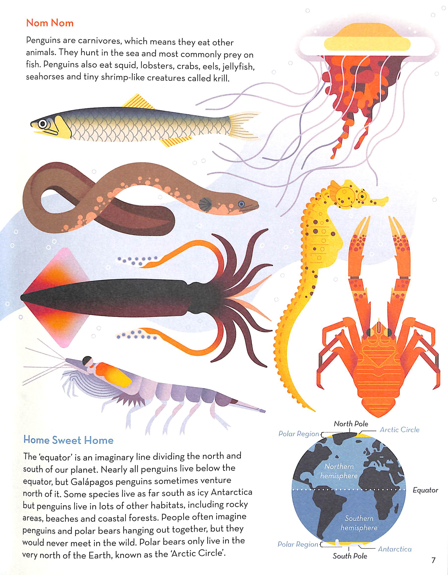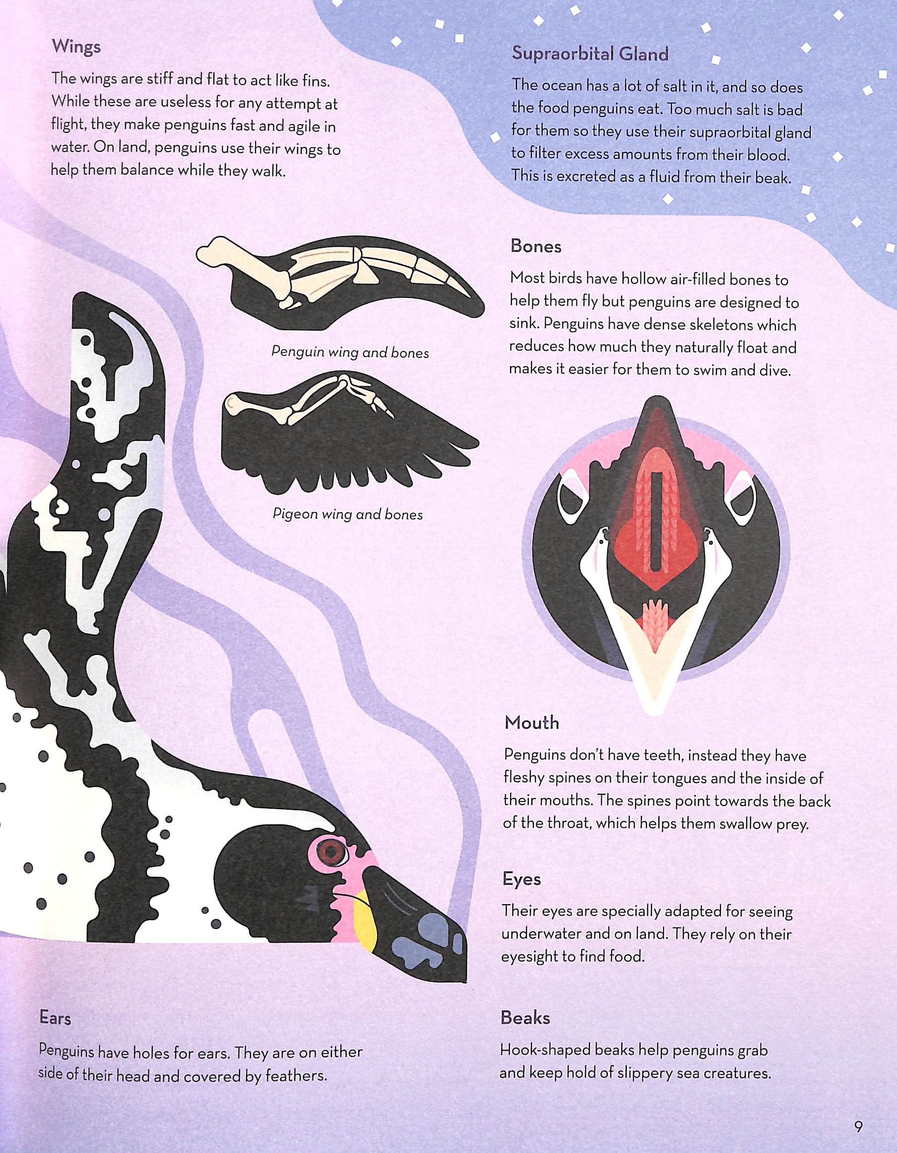 Did you know that penguins can hold their breath for over half an hour? Or that they can swim four times faster than an Olympic swimmer? And they don't just live in icy Antarctica! You can find them on sandy beaches in South Africa and other more tropical locations too. Dive into this fascinating illustrated guide to our feathered friends, the penguins.