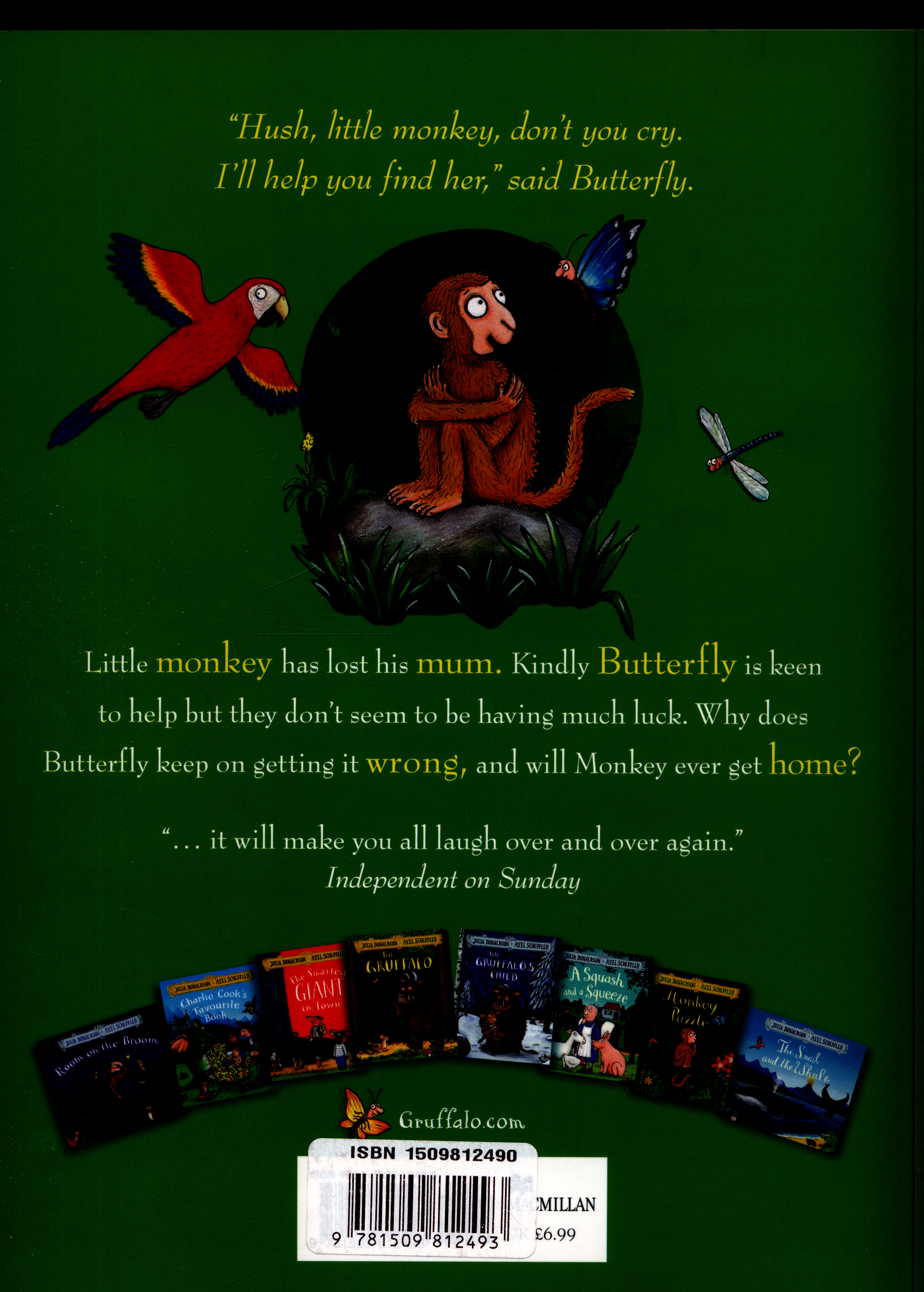 A funny, rhyming story packed full of favourite jungle animals, Monkey Puzzle is a bestselling classic from the unparalleled picture book partnership of Julia Donaldson and Axel Scheffler, creators of The Gruffalo. Little Monkey is lost in jungle! A kind butterfly is keen to help, but they don't seem to be having much luck and keep finding the wrong animals . . . will Monkey ever find his mum and dad?This classic story is a must-have addition to the bookshelves of all Donaldson and Scheffler fans – big and small!Also available: The Gruffalo, The Gruffalo's Child, The Snail and the Whale, The Smartest Giant in Town, Room on the Broom, Charlie Cook's Favourite Book and A Squash and a Squeeze. Look out for the brand new Gruffalo picture book coming on 10th September 2026.
