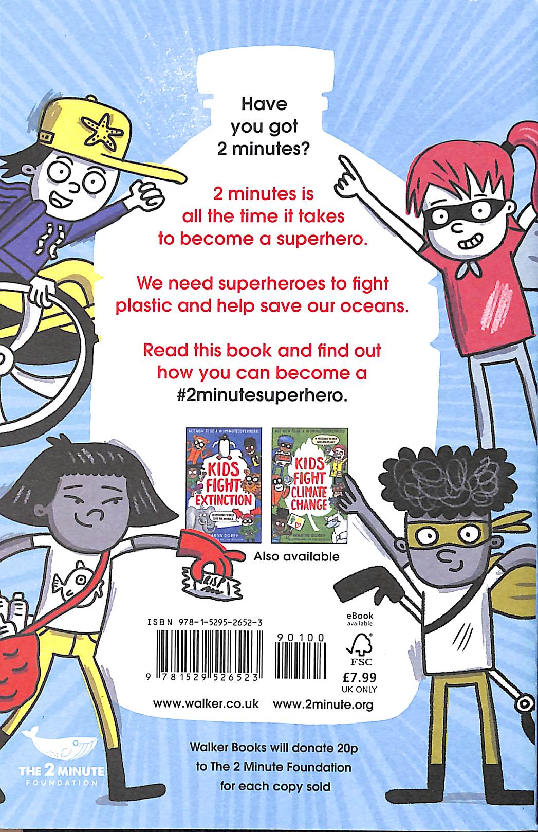 Plastic is everywhere. It is in the rivers and it is in the sea. We need superheroes to fight plastic and help save our oceans!Read this essential book and find out how you can become a #2minutesuperhero by completing 50 missions to fight plastic at home, school and on your days out. Informative, practical and positive, this guide for children is written by Martin Dorey, anti-plastic campaigner and author of the bestselling No.