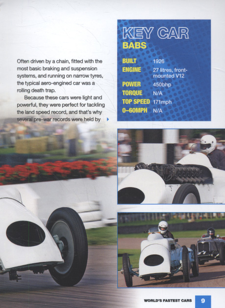 World's Fastest Cars charts the history of fast cars, from standard production models to highly modified cars, racing cars, drag racers and land-speed-record breakers, whether powered by piston, electric or jet engine.