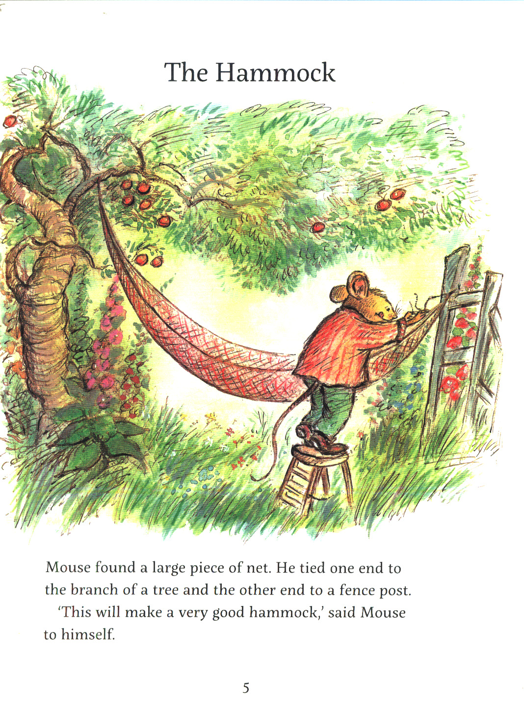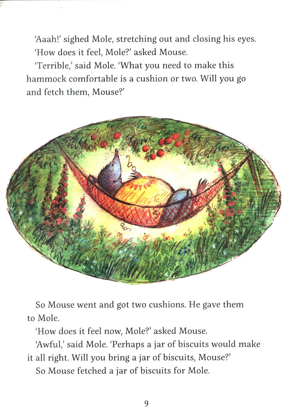 When Mouse makes himself a hammock, Mole is only too happy to test it for his friend, and Mouse is equally eager to help Mole find his lost spectacles.