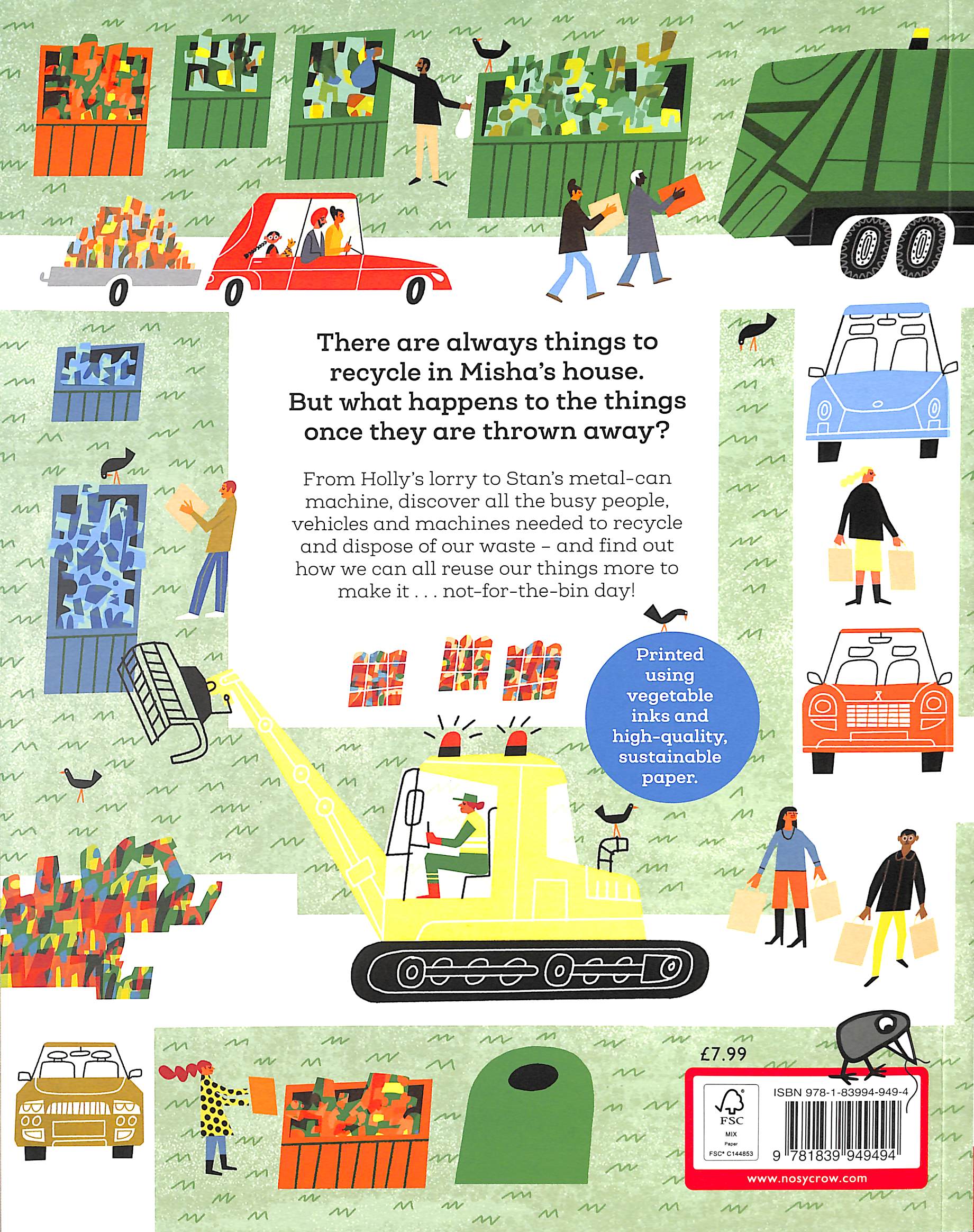 A fun, friendly picture book about recycling and rubbish - perfect for children aged 3-6. From Holly's lorry to Stan's metal-can machine, discover all the busy people, vehicles and machines needed to recycle and dispose of our rubbish - and find out how we can all reuse our things more to make it . . . not-for-the-bin day!With stylish, contemporary artwork from Klas Fahlén and gentle narrative text by Polly Faber, this gorgeous picture book introduces all the people, processes and vehicles involved in recycling paper, glass, plastic, food and more. Bonus non-fiction material includes three pages of fully illustrated tips on how young readers can reduce, reuse and recycleFact-checked by Dr Margaret Bates, Professor of Sustainable Waste Management at the University of NorthamptonThe ideal book for climate-conscious parents wanting to empower and educatePrinted using vegetable inks and high-quality, sustainable paperIncludes a FREE Nosy Crow Stories Aloud® audiobook!