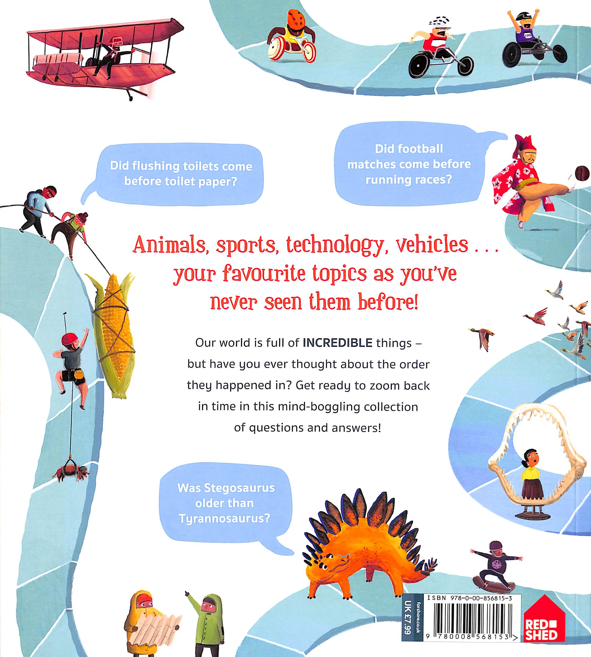 Discover a host of surprising facts about science, animals, people, games and much more in an incredible journey through the world’s timeline. Are pants older than socks? Did flushing toilets come before toilet paper? What’s older – Mount Everest or sharks? Find out the answer to these questions, and much, much more in this book!