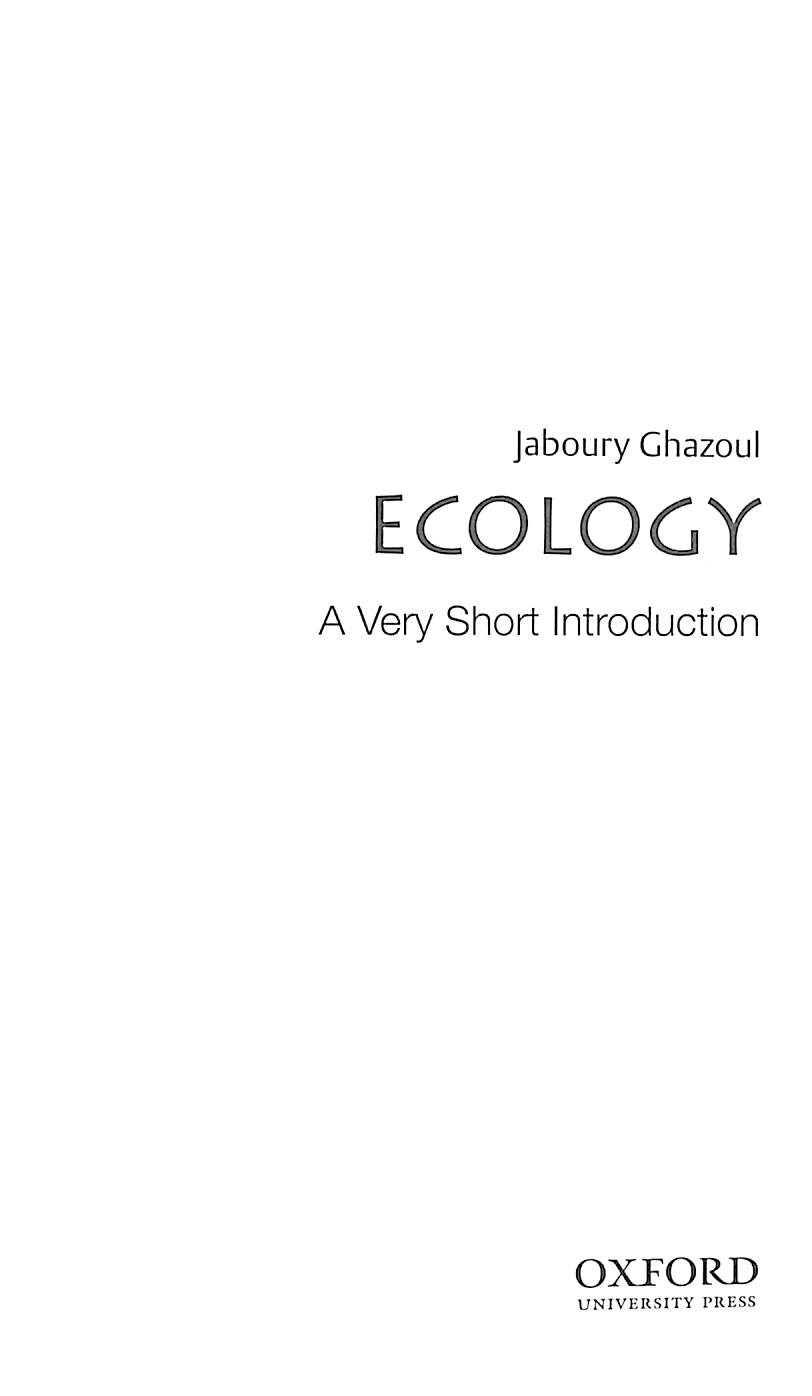 This Very Short Introduction celebrates the centrality of ecology in our lives.