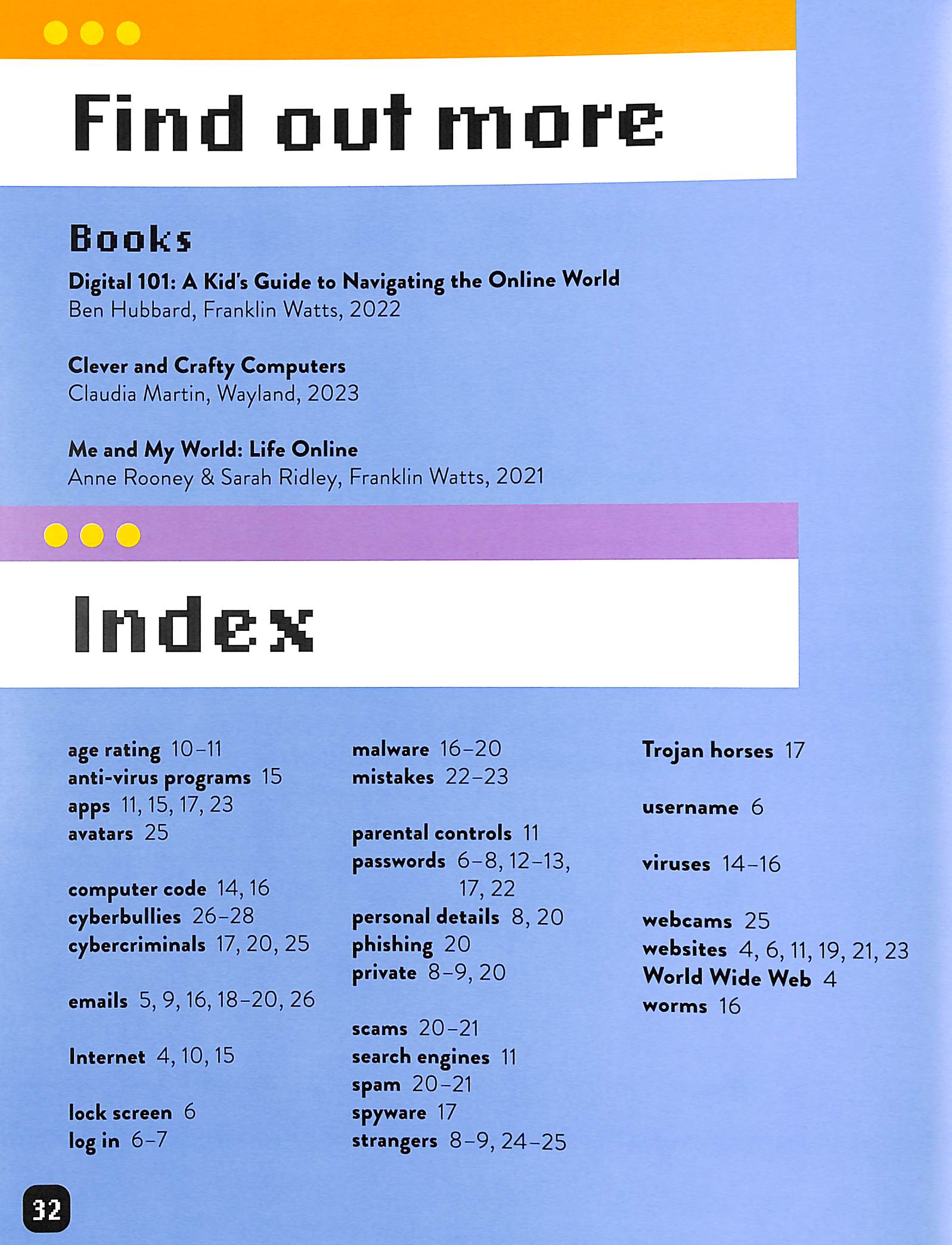 Computer Kids: Staying Safe Online will show you the best ways to do so, from setting strong passwords to spotting a scam to knowing when to ask for help. These positive, friendly guides aim to explain to young readers the learning potential and fun of digitaldevices, websites and (age-appropriate) media and games, but also how to stay well and protectthemselves and their projects when they're online.