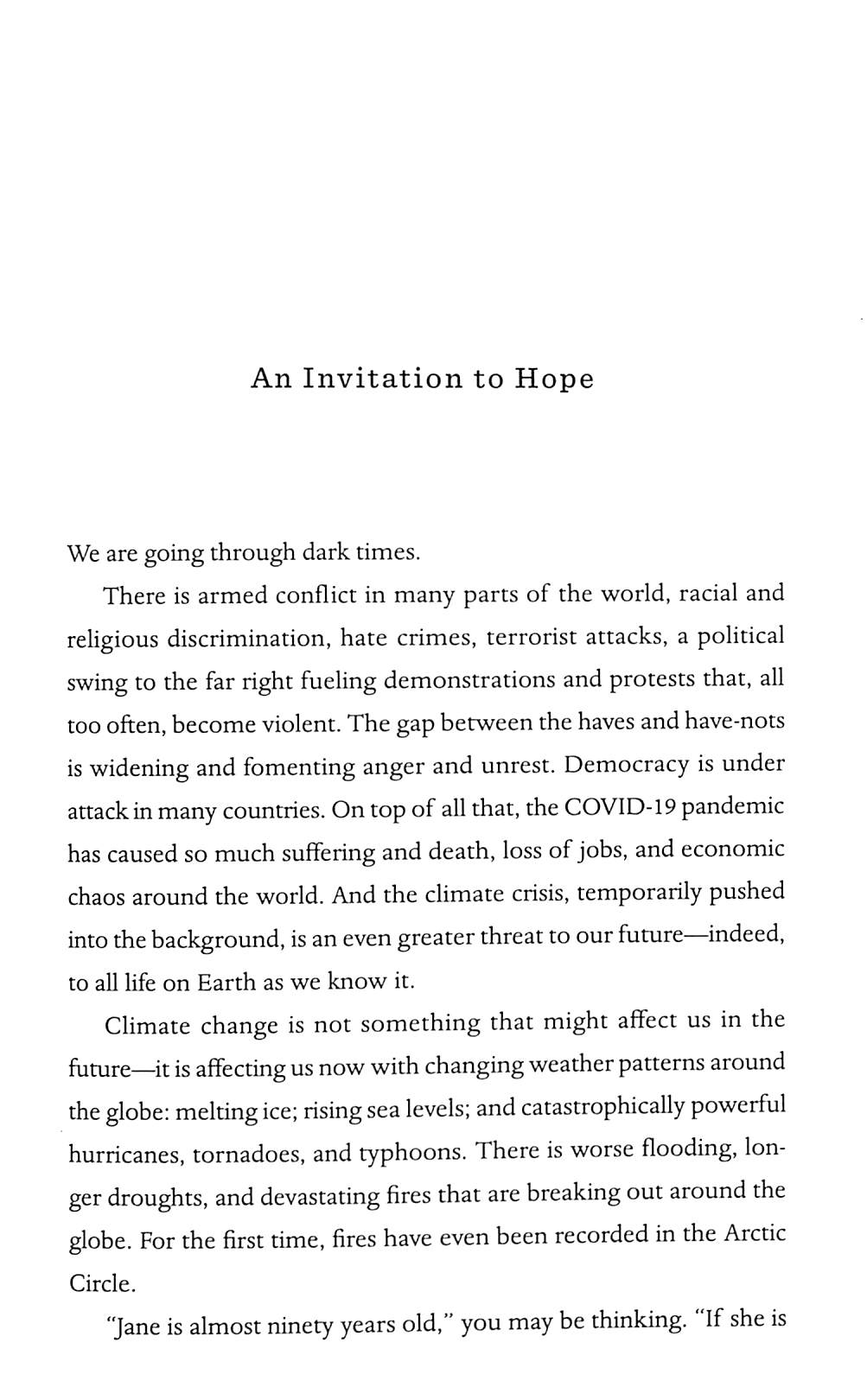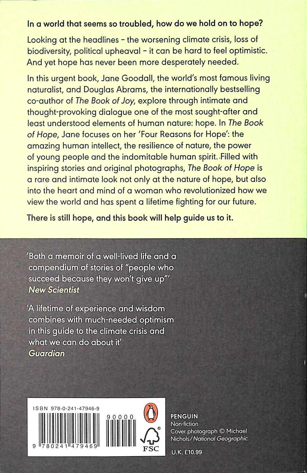 A lifetime spent fighting for nature. An indispensable message of hope. In a world that seems so troubled, how do we hold on to hope?Looking at the headlines – the worsening climate crisis, loss of biodiversity, political upheaval – it can be hard to feel optimistic. And yet hope has never been more desperately needed. In this urgent book, Jane Goodall, legendary conservationist and the world's most famous naturalist, and Douglas Abrams, the bestselling co-author of The Book of Joy, explore one of the most sought after and least understood elements of human nature: hope.