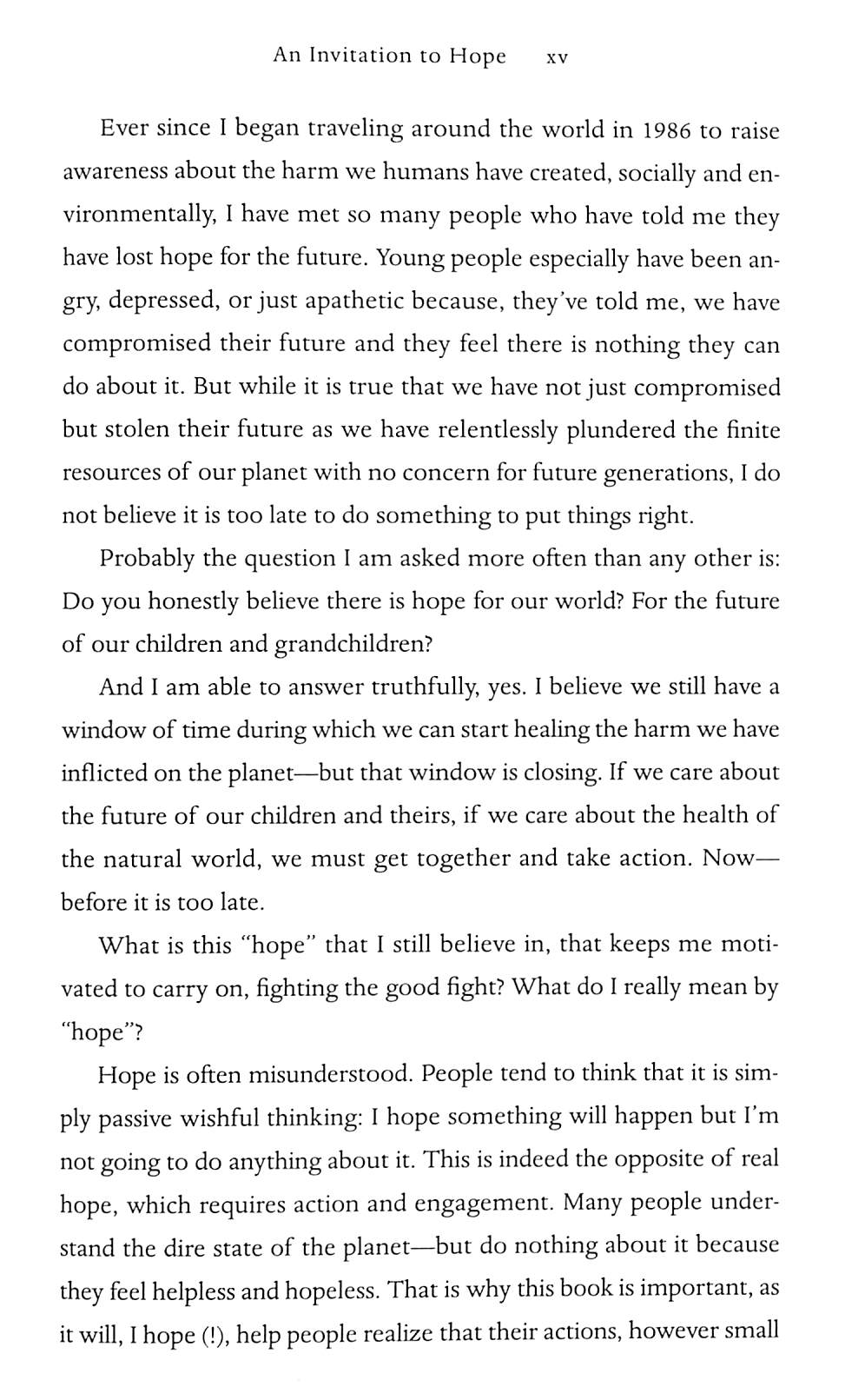 Through intimate and thought-provoking dialogue, The Book of Hope focuses on Jane Goodall’s "Four Reasons for Hope": The Amazing Human Intellect, The Resilience of Nature, The Power of Young People, and The Indomitable Human Spirit. Filled with inspiring stories and original photographs, The Book of Hope is a rare and intimate look at the nature of hope.