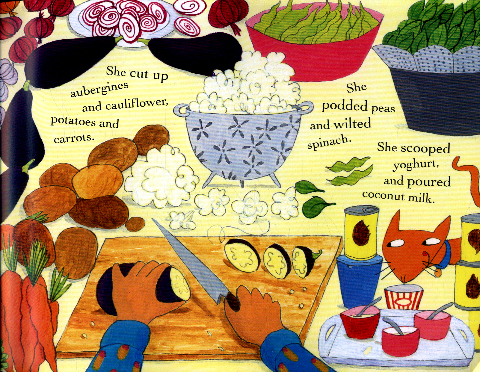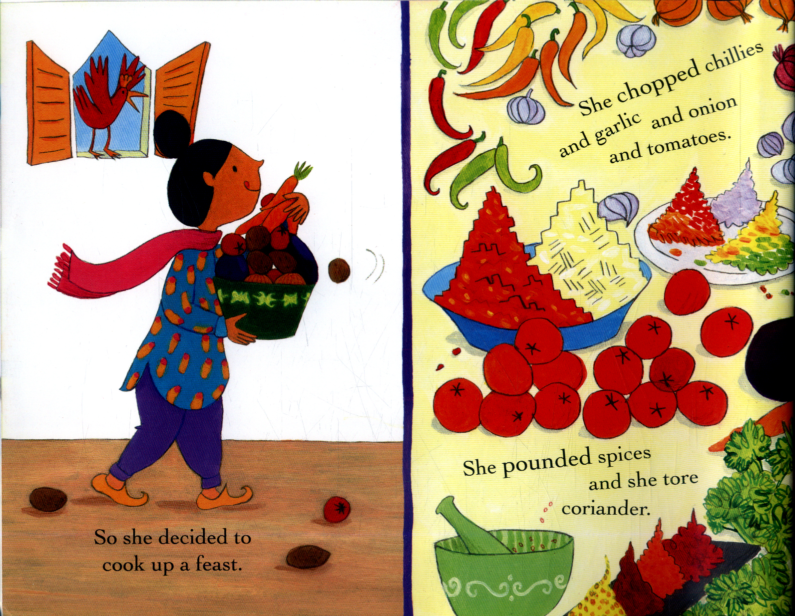 Follow the trail of the chapatti as it bounces and bursts through the book -- where will its adventure end?