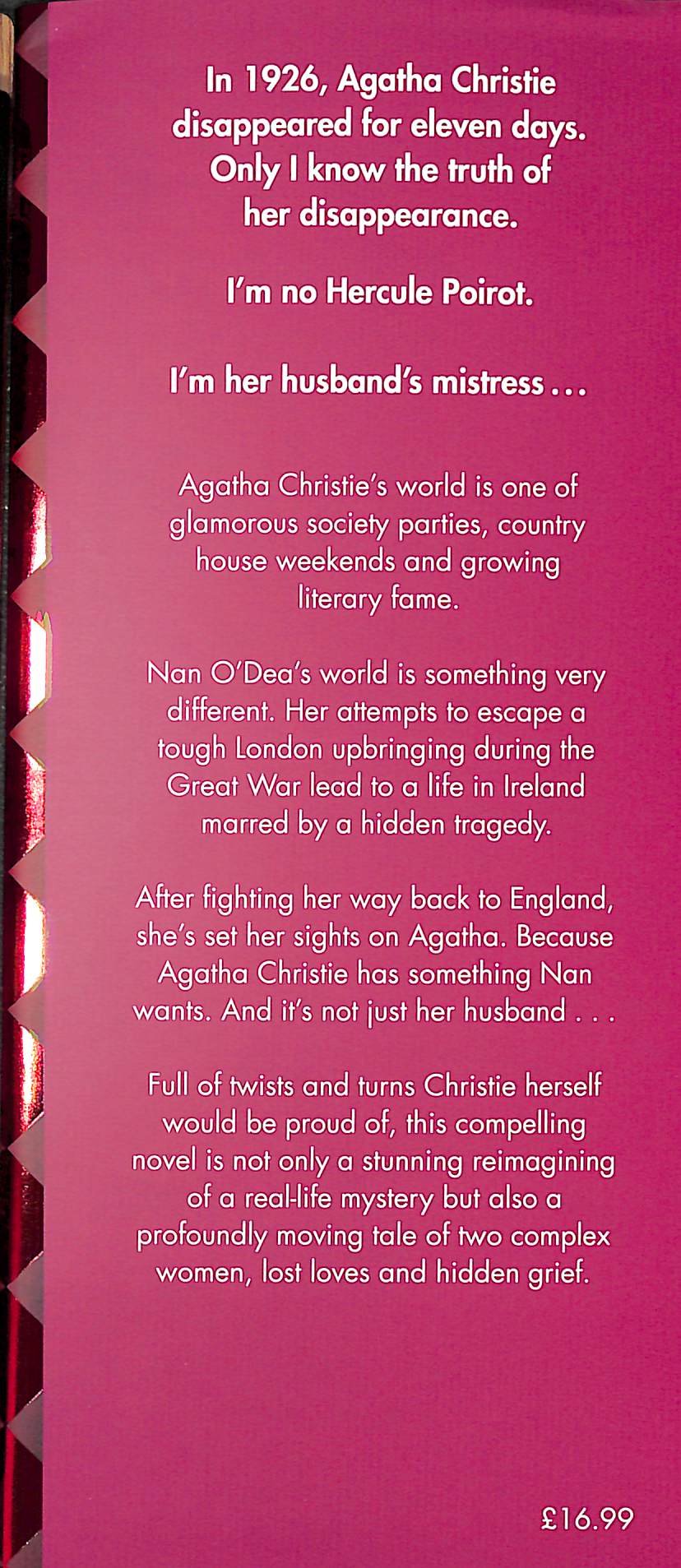 After fighting her way back to England, she’s set her sights on Agatha. Because Agatha Christie has something Nan wants. And it’s not just her husband. Despite their differences, the two women will become the most unlikely of allies. And during the mysterious eleven days that Agatha goes missing, they will unravel a dark secret that only Nan holds the key to . . . A Reese Witherspoon Book Club PickThe Instant New York Times Bestseller‘Storytelling at its very finest’ - My Weekly‘Scintillating’ - Daily Mail‘Romance, enigma and wit in bucketloads’ - Elizabeth Macneal, author of The Doll Factory‘A genuine marvel’ - Kristin Hannah, author of Firefly Lane‘Ingenious’ - AJ Pearce, author of Dear Mrs Bird
