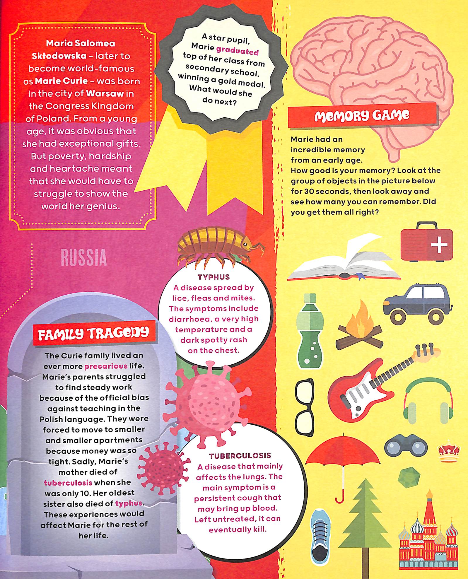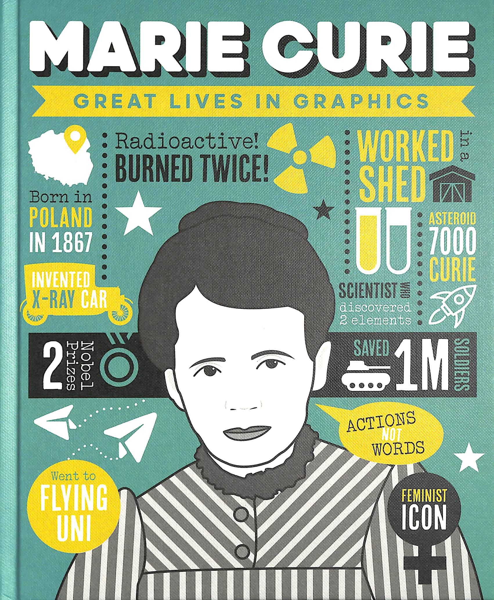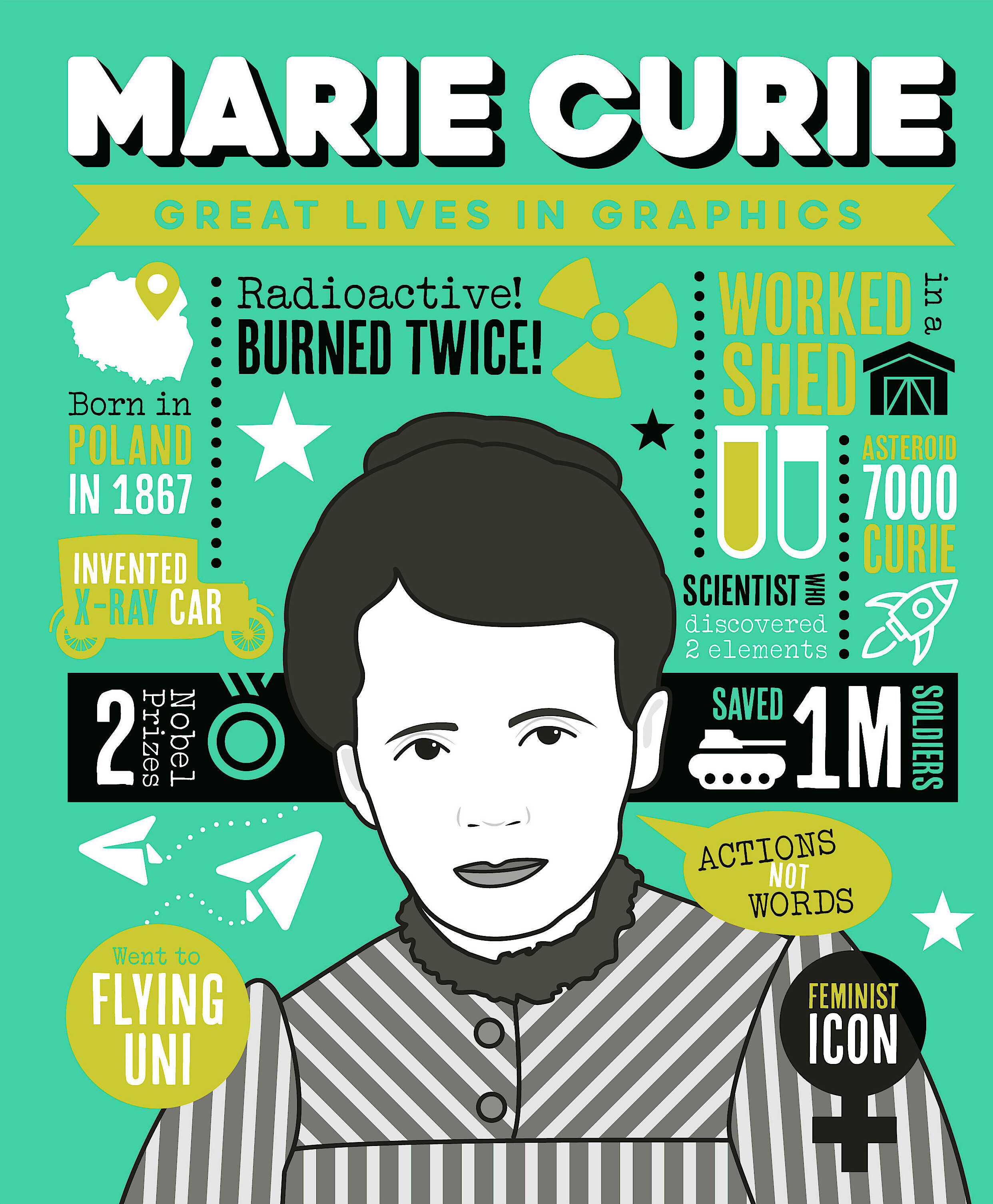 You may already know that Marie Curie was a scientific genius who pioneered the study of radioactivity, but did you know that she changed her name to Marie to sound more French? Or that her body’s so radioactive she had to be buried in a lead coffin?Great Lives in Graphics reimagines the lives of extraordinary people in vivid technicolour, presenting 250+ biographical facts in a new and exciting way.
