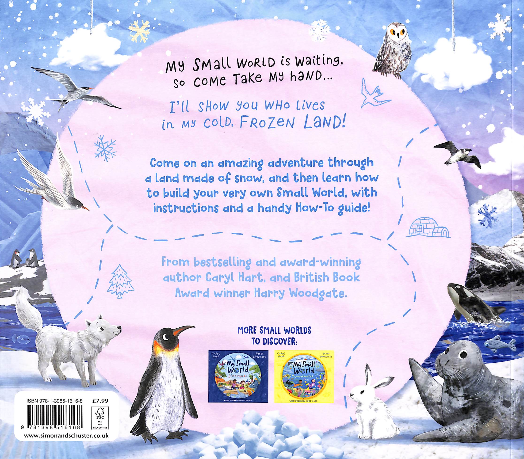 From cuddly polar bear cubs playing in caves, elegant reindeer galloping across the snow and narwals and orcas who splash in the waves to the families of penguins who march across the South Pole, there is so much to see.  This interactive series from bestselling author Caryl Hart and Waterstones Children's Book Prize winner Harry Woodgate promotes imaginative play for early years, and features a handy how-to guide with ideas to help readers create their own small worlds.