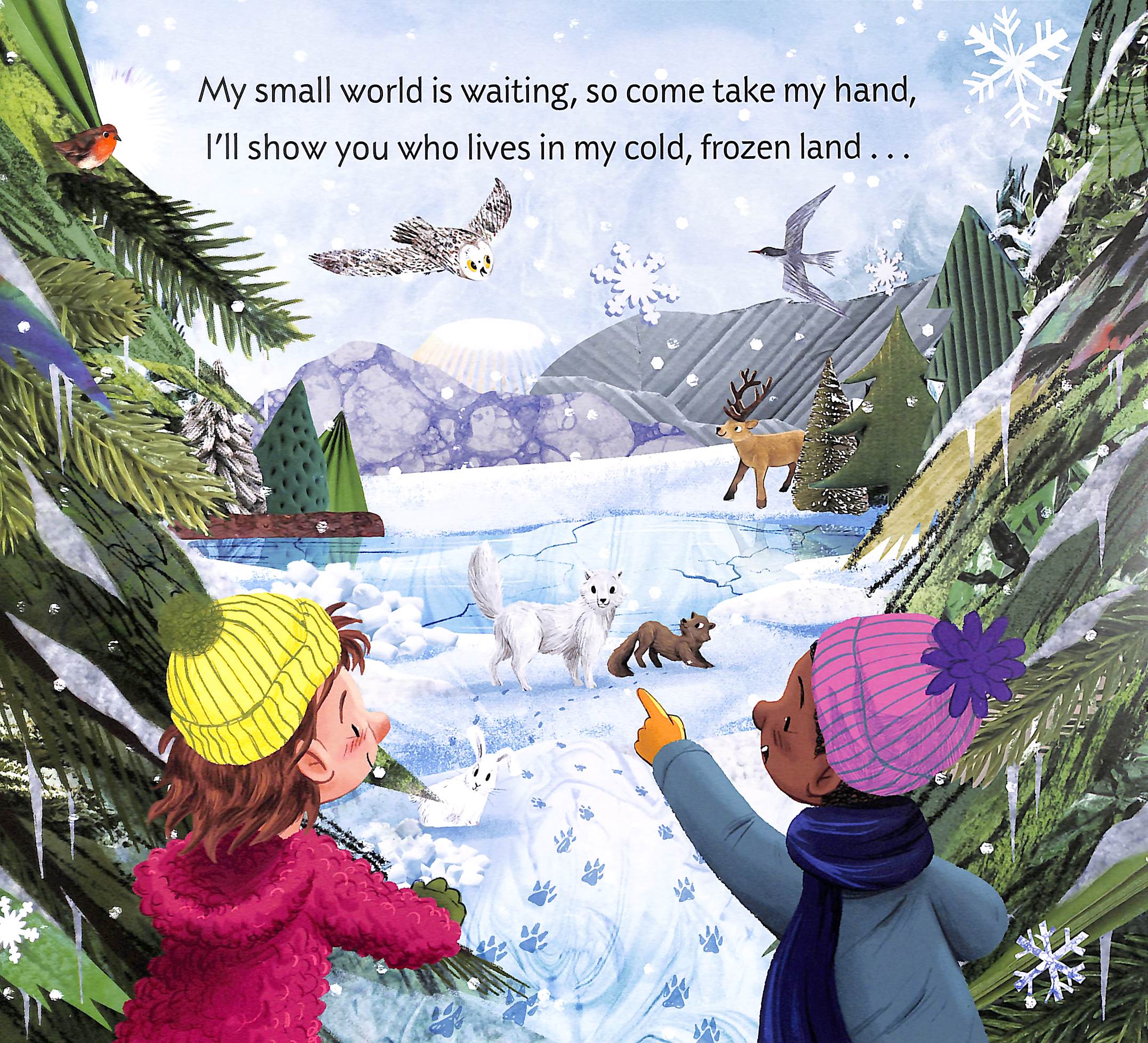 There are creatures galore in my land made of snow And huge floating icebergs wherever you go. My small world is waiting, so come take my hand,  I'll show you who lives in my cold, frozen land . . .  Discover a world full of ice, snow and sea, and meet the magnificent creatures who live on our frozen planet.