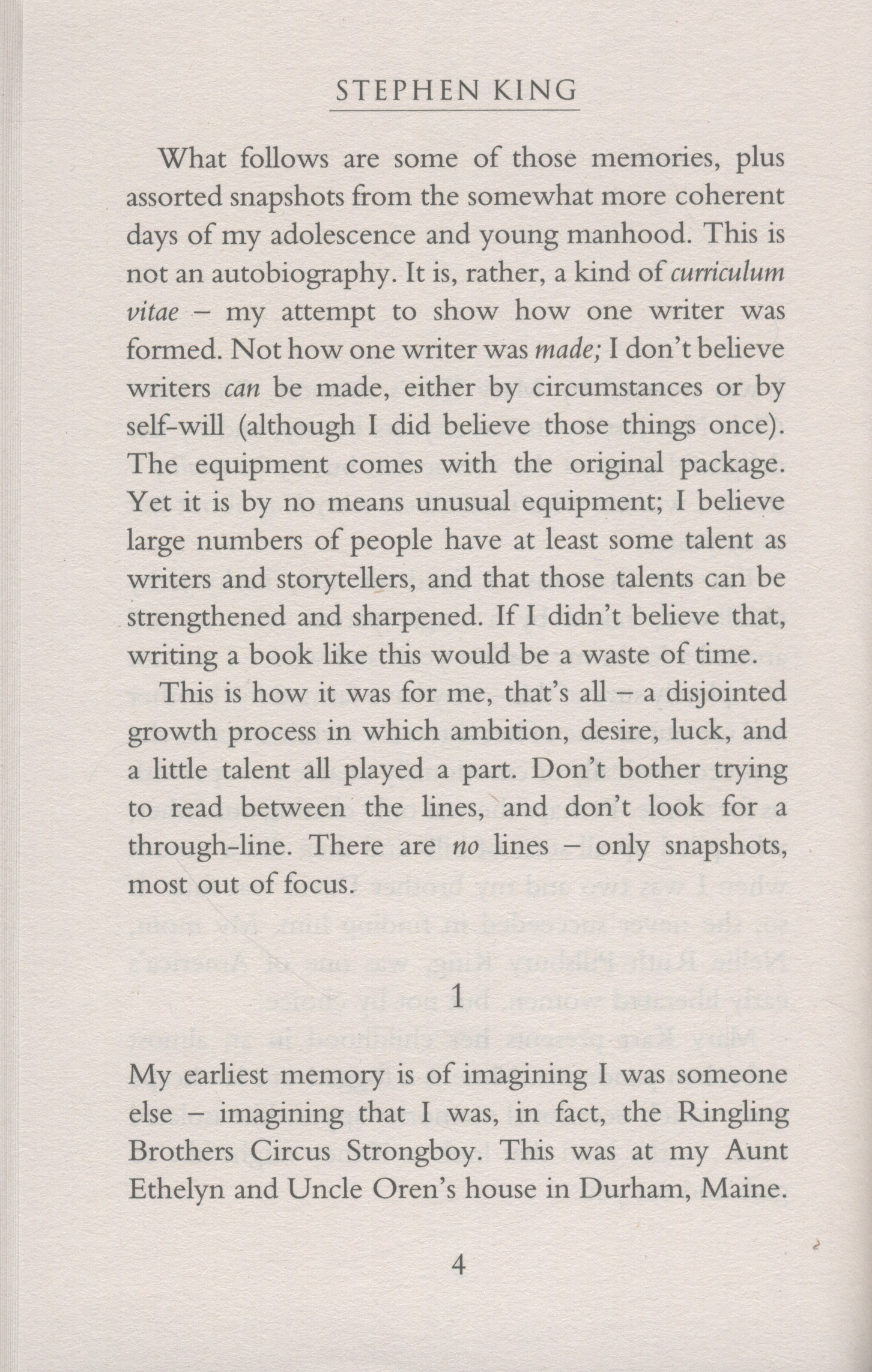 King's advice is grounded in his vivid memories from childhood through his emergence as a writer, from his struggling early career to his widely reported, near-fatal accident in 1999 - and how the inextricable link between writing and living spurred his recovery.