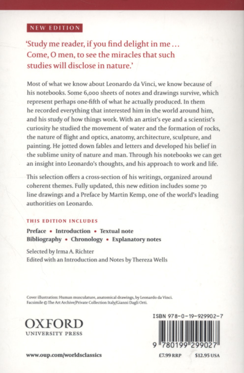 Through his notebooks we can get an insight into Leonardo's thoughts, and his approach to work and life. This selection offers a cross-section of his writings, organized around coherent themes.