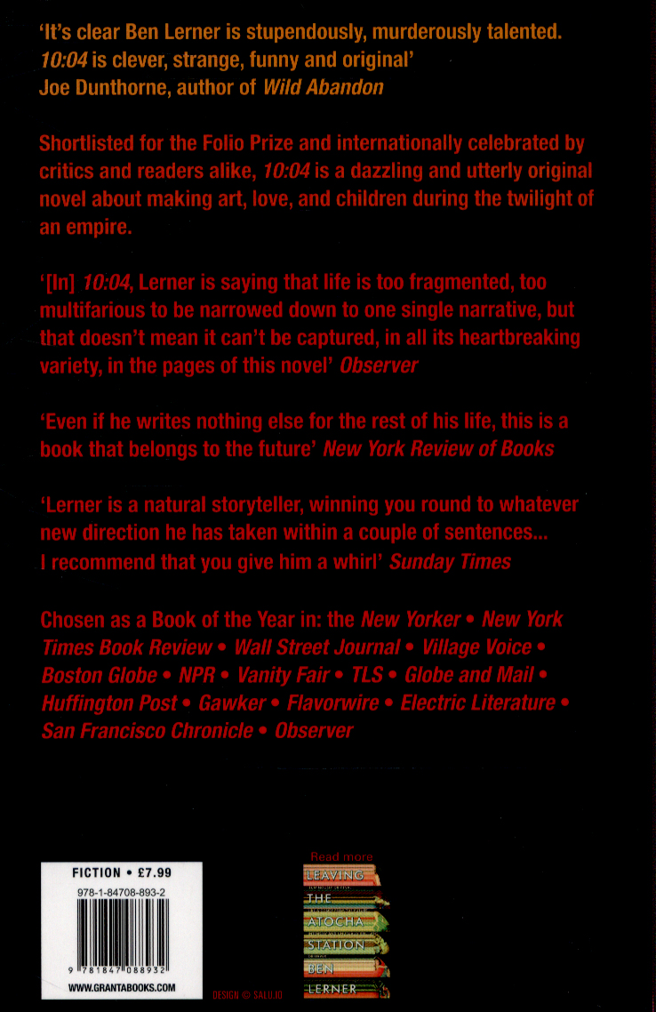 Anyone interested in serious contemporary literature should read Ben Lerner, and 10:04 is the perfect place to start' - Jeffrey Eugenides, author of The Marriage Plot