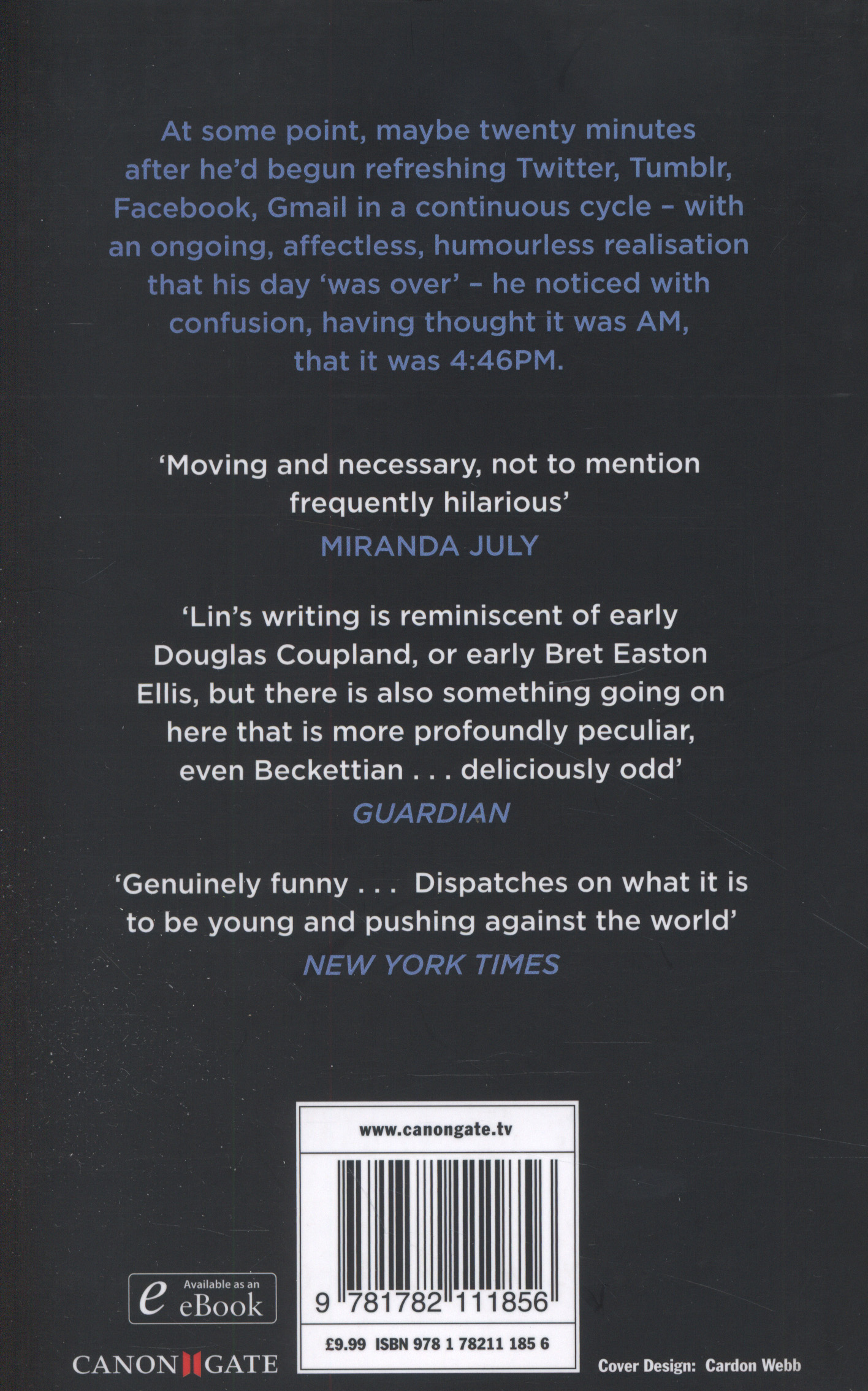 At some point, maybe twenty minutes after he'd begun refreshing Twitter, Tumblr, Facebook, Gmail in a continuous cycle - with an ongoing, affectless, humorless realisation that his day 'was over' - he noticed with confusion, having thought it was early morning, that it was 4:46PMTaipei is an ode - or lament - to the way we live now.