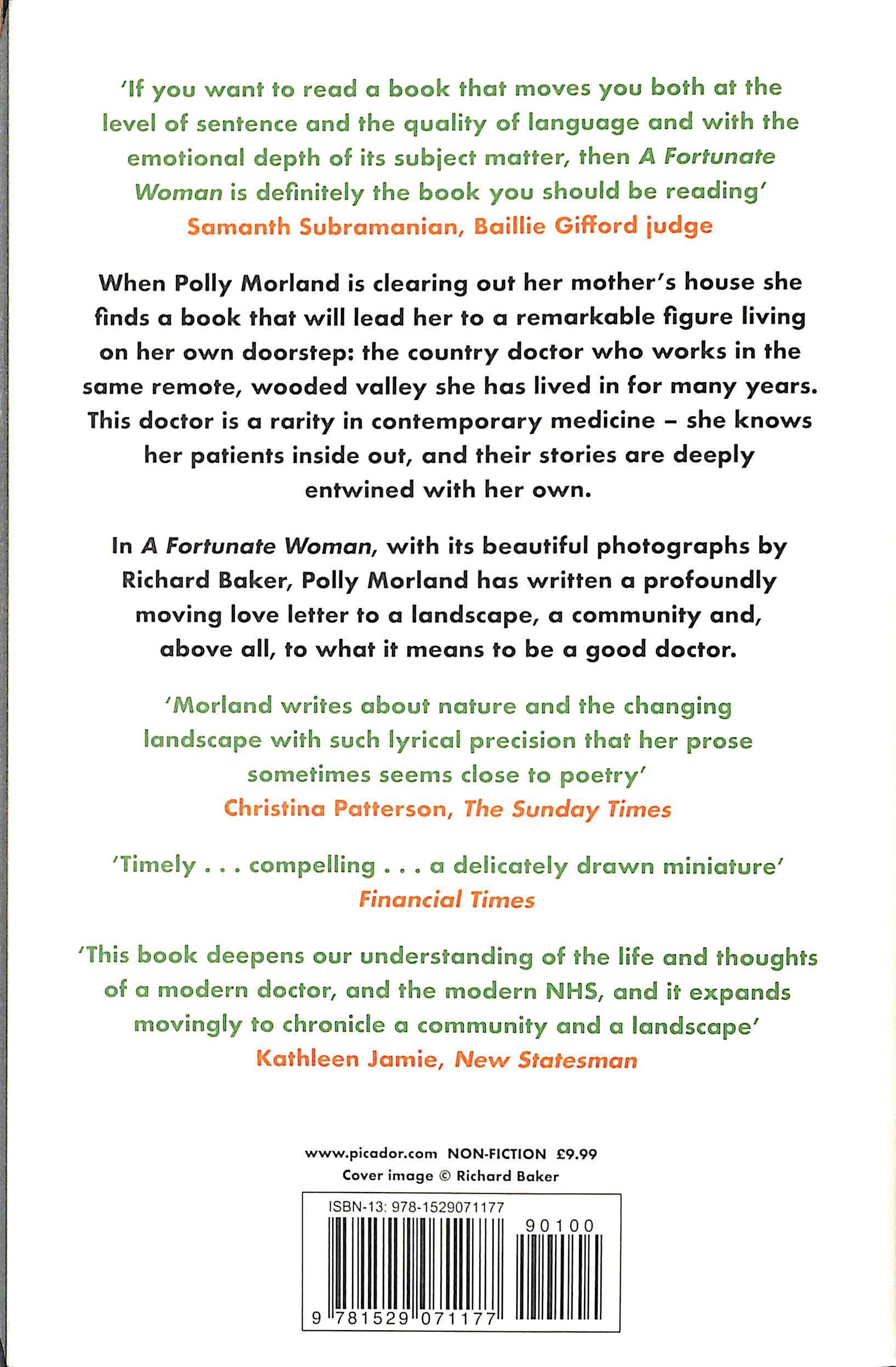 This doctor is a rarity in contemporary medicine – she knows her patients inside out, and their stories are deeply entwined with her own. In A Fortunate Woman, with its beautiful photographs by Richard Baker, Polly Morland has written a profoundly moving love letter to a landscape, a community and, above all, to what it means to be a good doctor. ‘Morland writes about nature and the changing landscape with such lyrical precision that her prose sometimes seems close to poetry’ - Christina Patterson, The Sunday Times‘Timely . . . compelling . . . a delicately drawn miniature’ - Financial Times‘This book deepens our understanding of the life and thoughts of a modern doctor, and the modern NHS, and it expands movingly to chronicle a community and a landscape’ - Kathleen Jamie, New Statesman