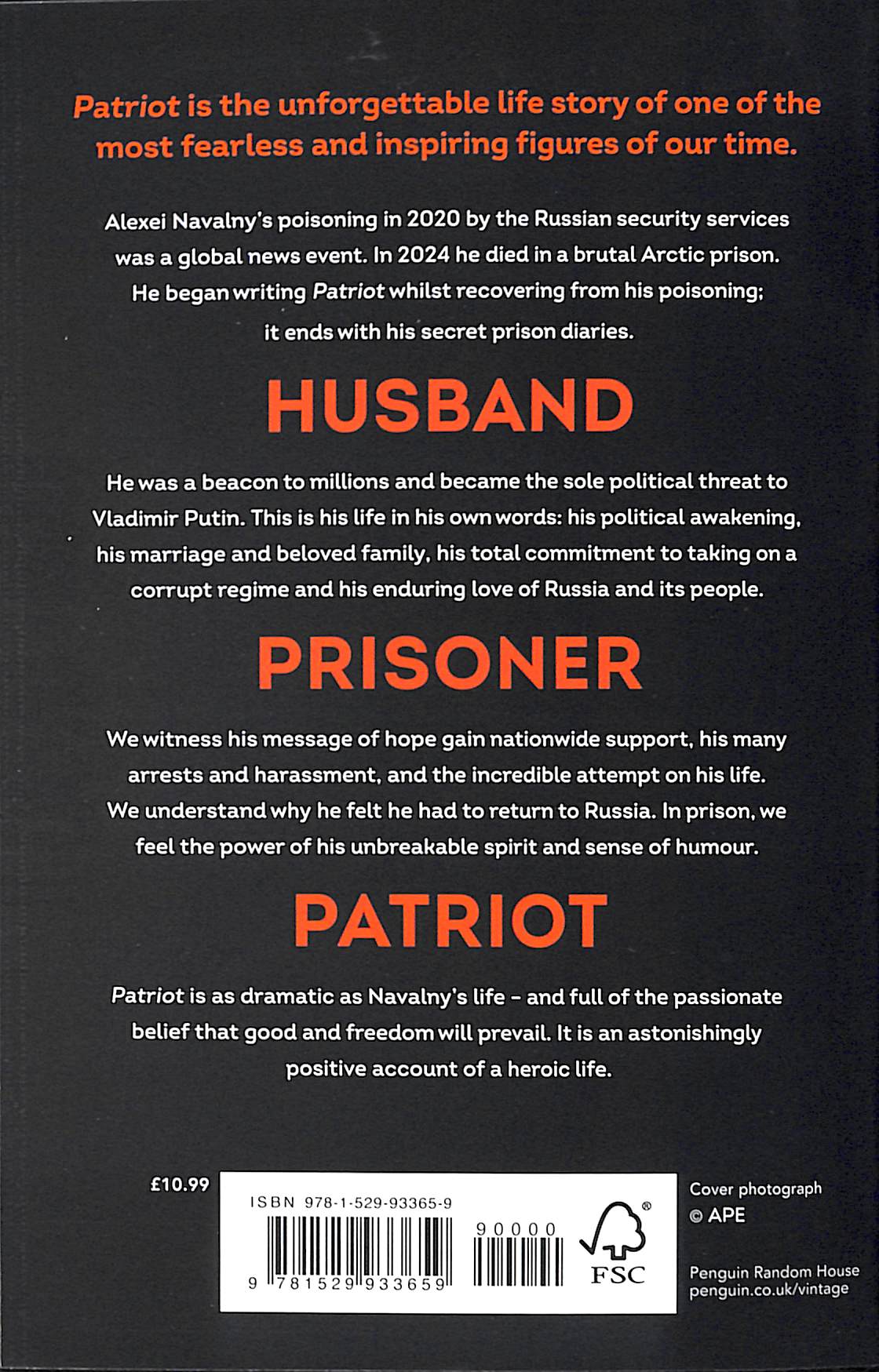 **THE INSTANT SUNDAY TIMES BESTSELLER****WINNER OF THE BRITISH BOOK AWARDS 2024 BOOK OF THE YEAR**Patriot is the unforgettable life story of one of the most fearless and inspiring figures of our time. 'Mind-blowing ... one extraordinary read' EMILY MAITLIS‘Charisma and courage dazzle on every page’ SUNDAY TIMES'Part memoir, part diary, a political manifesto, a darkly funny adieu' BEN MACINTYREAlexei Navalny’s poisoning in 2020 by the Russian security services was a global news event.