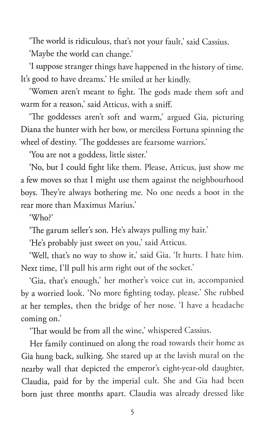 The Roman Goddesses have grown weary of the rule of Gods and men. They seek to change the fortune of the world by backing a brilliant young woman. In Pompeii, Gia dreams of being a female Gladiator, but there is no such thing. When she wins the favour of Claudia – the beautiful daughter of the Emperor – her star begins to rise in the arena, but so does the risk to her life. Together, the girls must battle conspiracies to overthrow the Empire, and their growing feelings for one another.