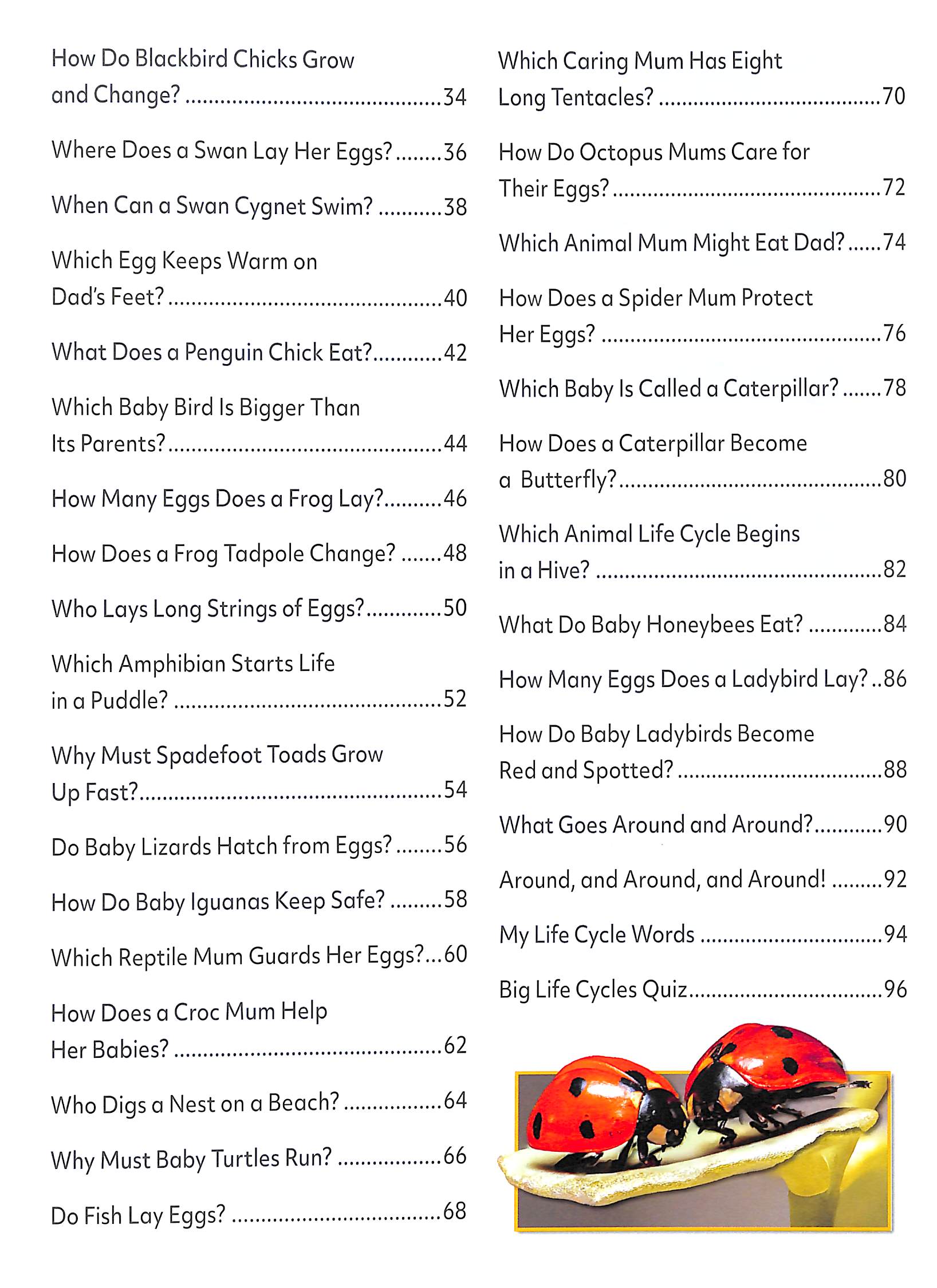 This big book of 96 info-packed pages introduces young readers to the subject of life cycles using a Question and Answer format.