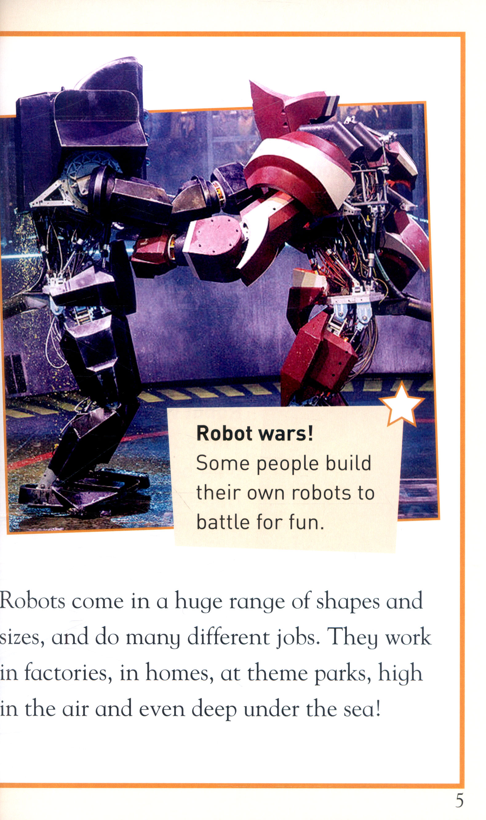 This irresistible reading series is sure to fire the imagination of young readers with its exciting range of high-interest topics and its great-looking, easy-to-follow design. Developed with literacy experts, this five-level graded reading series will guide young readers as they build confidence and fluency in their literacy skills and progress towards reading alone. Robots introduces children who can read alone with some help to these incredible inventions.