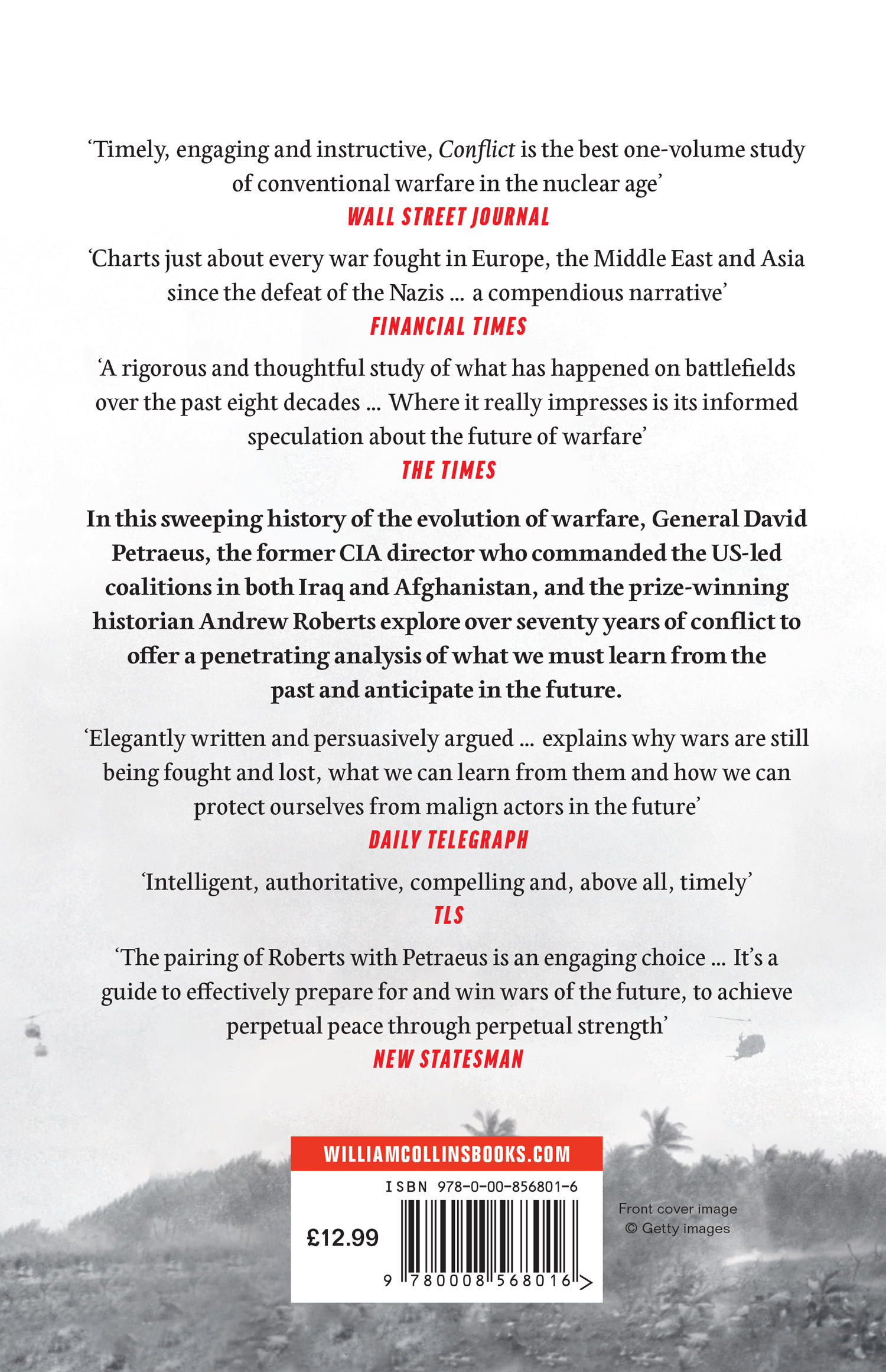 THE INTERNATIONAL BESTSELLER ‘A rigorous and thoughtful study of what has happened on battlefields over the past eight decades’ THE TIMES ‘A hugely important book … elegantly written and persuasively argued’ DAILY TELEGRAPH ** FULLY UPDATED TO INCLUDE NEW MATERIAL ON THE ISRAEL/GAZA CONFLICT ** Conflict is both a sweeping history of the evolution of warfare up to Putin’s invasion of Ukraine, and a penetrating analysis of what we must learn from the past, and anticipate in the future, in order to navigate an increasingly perilous world. In this deep and incisive study, General David Petraeus, the former CIA director who commanded the US-led coalitions in both Iraq and Afghanistan, and the prize-winning historian Andrew Roberts, explore over seventy years of conflict, drawing significant lessons and insights from their fresh analysis of the past.