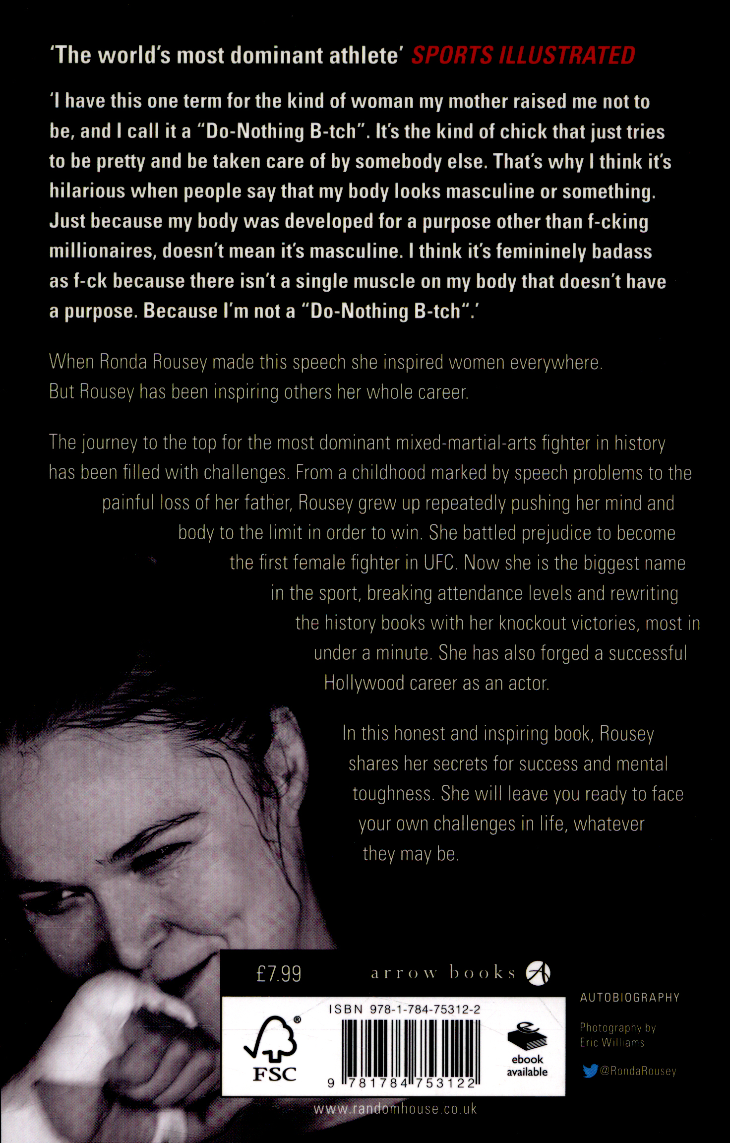 She has also forged a successful Hollywood career as an actor. In this honest and inspiring book, Rousey relives her greatest fights and shares her secrets for success and mental toughness.