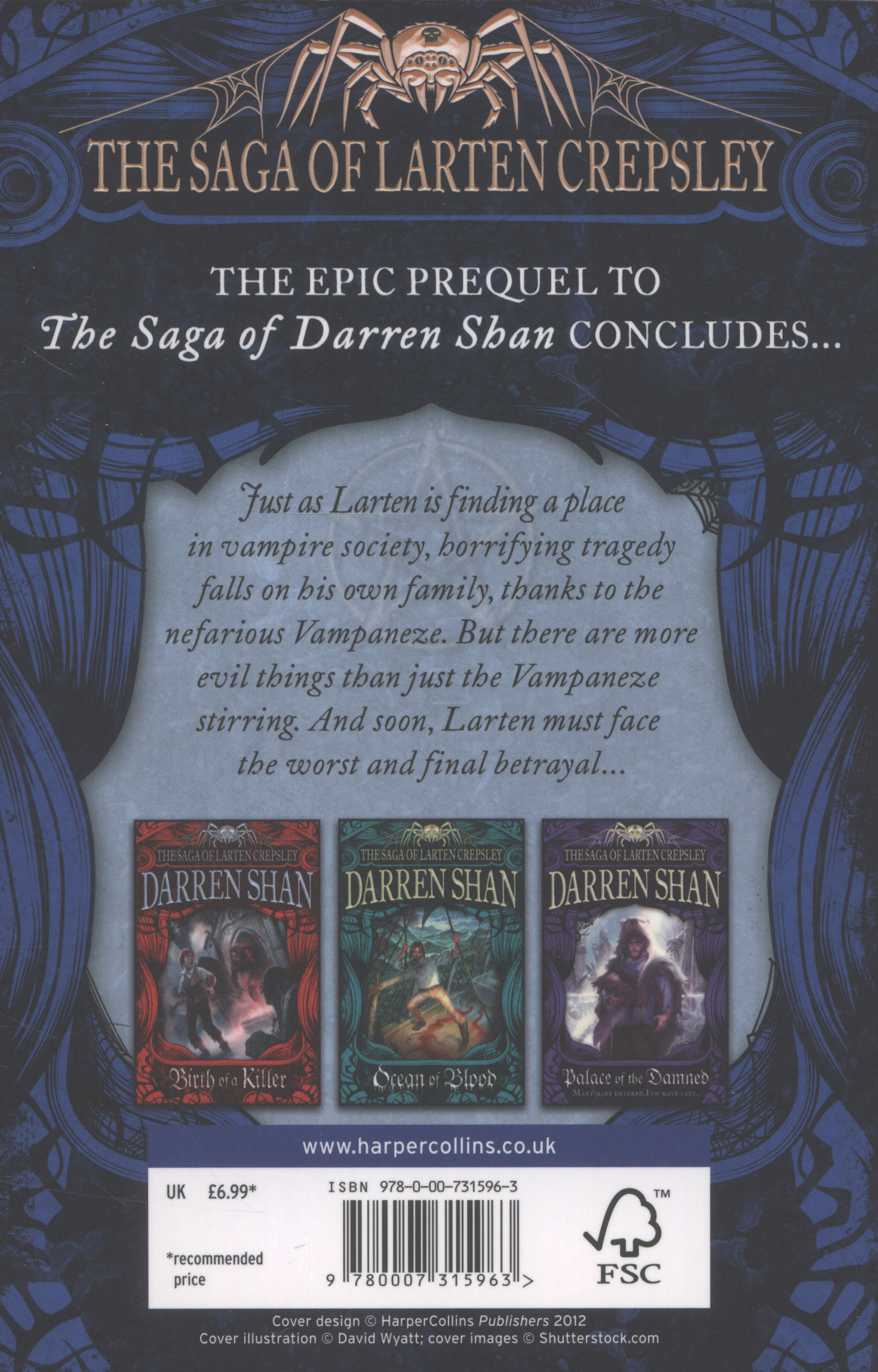 The fourth and final instalment in the epic saga of Larten Crepsley – vampire, hero and victim of fate… Just as Larten is finding a new place for himself in vampire society, and helping vampires escape the Nazi menace, horrifying tragedy falls on his own family thanks to the nefarious Vampaneze. With his old friend Wester calling for war against the ancient enemies of vampires, Larten finds himself a figurehead of the campaign. But there are more evil things than just the Vampaneze stirring. And soon, Larten might find himself grieving again – as he faces the worst and final betrayal…
