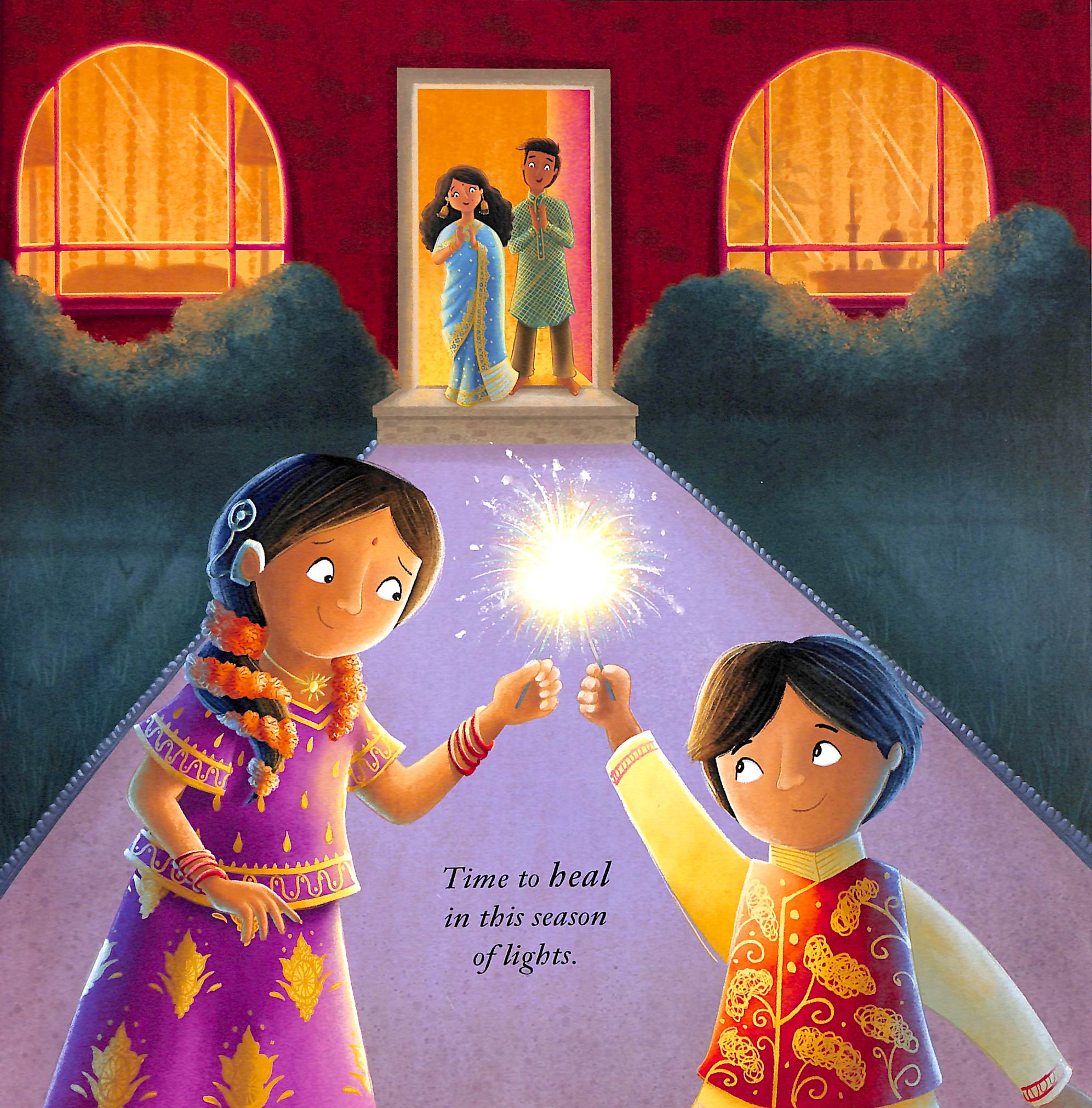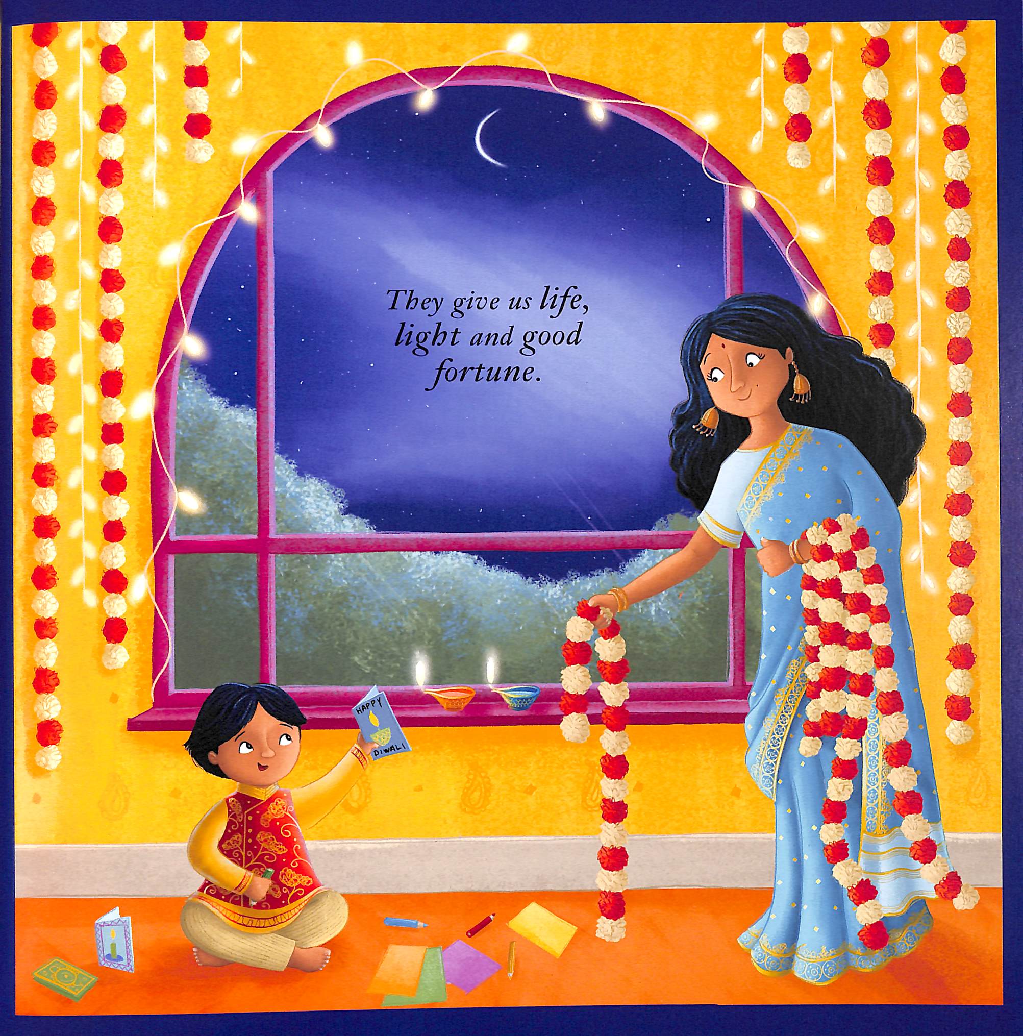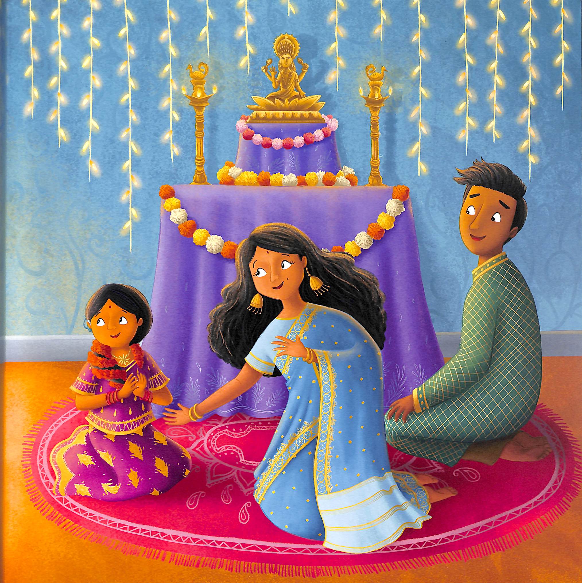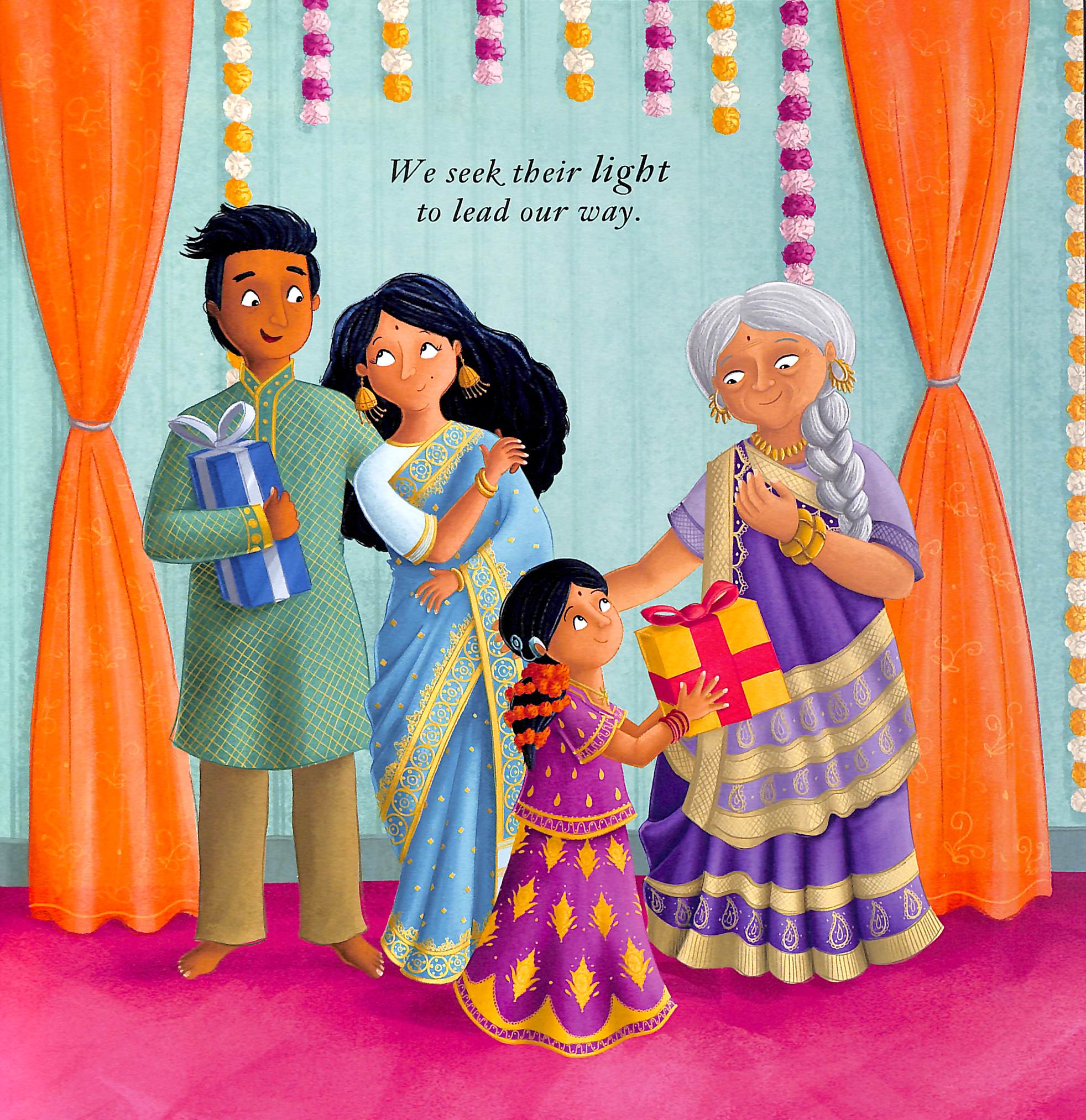 One lamp welcomes the goddess of wealth. She blesses all with wisdom and health. Feasts. Fireworks. Fun with family and friends. Shine a light on the magical moments that make up Diwali, the Festival of Lights, in this warm and dazzling storybook.