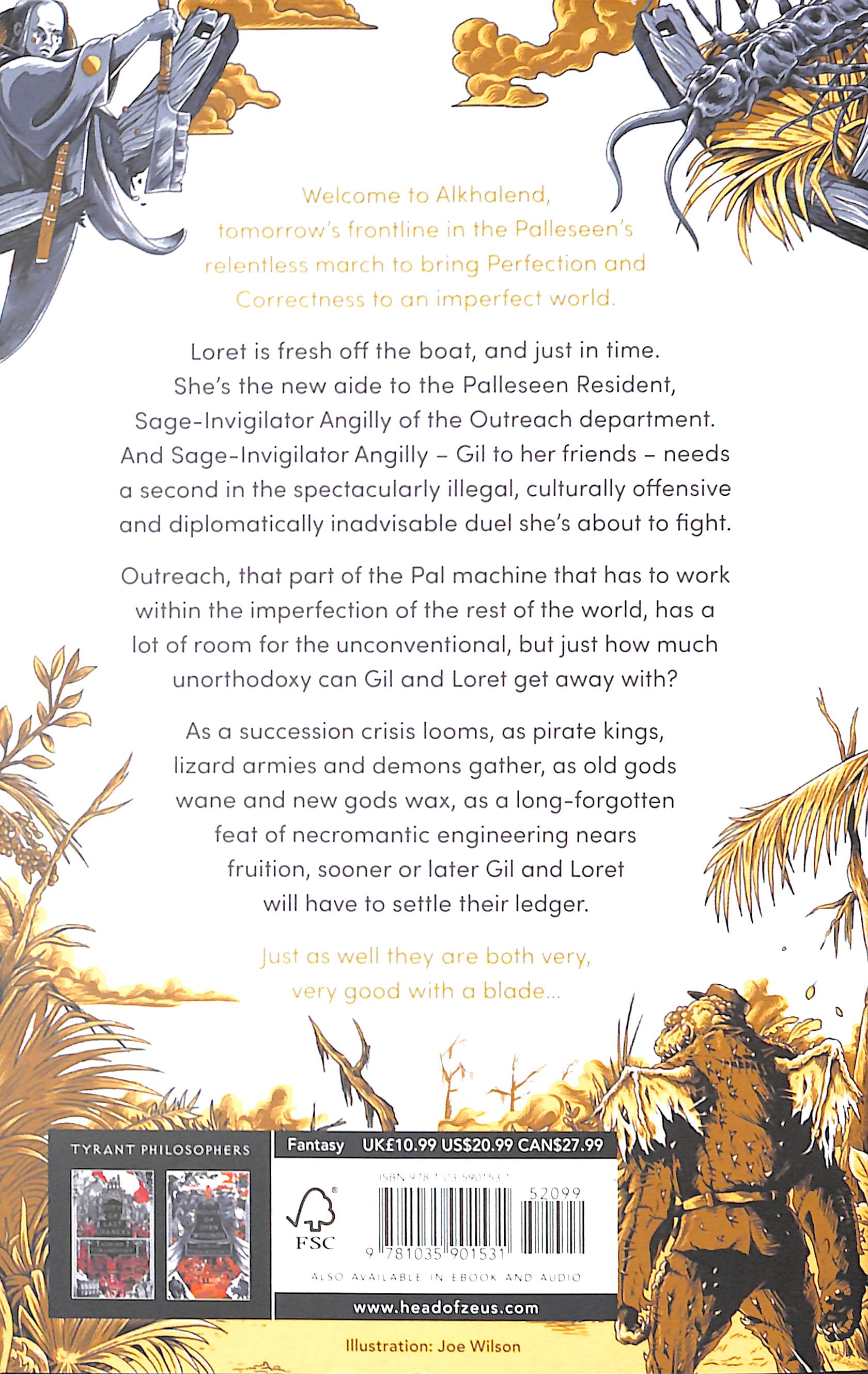 But just how much unorthodoxy can Gil and Loret get away with?As a succession crisis looms, as a long-forgotten feat of necromantic engineering nears fruition, as pirate kings, lizard armies and demons gather, as old gods wane and new gods wax, sooner or later Gil and Loret will have to settle their ledger. Just as well they are both very, very good with a blade…Also in the TYRANT PHILOSOPHERS series:CITY OF LAST CHANCESHOUSE OF OPEN WOUNDSLIVES OF BITTER RAINDAYS OF SHATTERED FAITHPRETENDERS TO THE THONE OF GOD