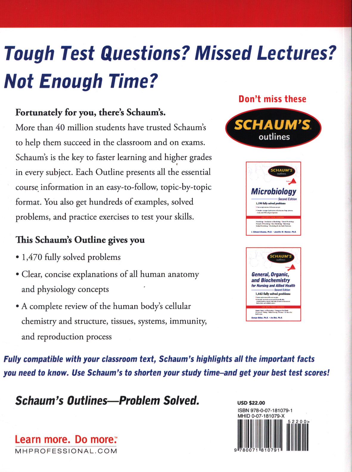 You also get hundreds of examples, solvedproblems, and practice exercises to test your skills. This Schaum's Outline gives you1,470 fully solved problemsClear, concise explanations of all human anatomyand physiology conceptsA complete review of the human body’s cellularchemistry and structure, tissues, systems, immunity,and reproduction processFully compatible with your classroom text, Schaum's highlights all the important facts you need to know.