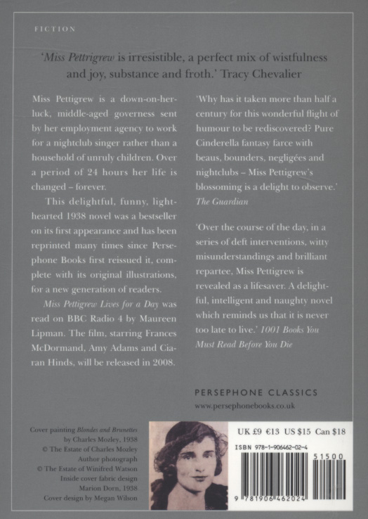 'Why has it taken more than half a century for this wonderful flight of humor to be rediscovered?' - "Guardian". 'The sweetest grown-up book in the world' - "Sunday Times". 'Everyone, no matter how poor or prim or neglected, has a second chance to blossom in the world' - "Daily Mail," in reference to "Miss Pettigrew Lives for a Day".
