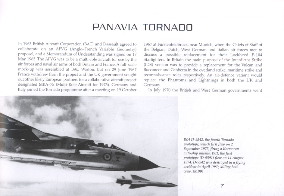Supporting text on mono spreads with mono photos. Brief introduction. This Book: The Tornado has been the backbone of the RAF within its many different theatres of operation.