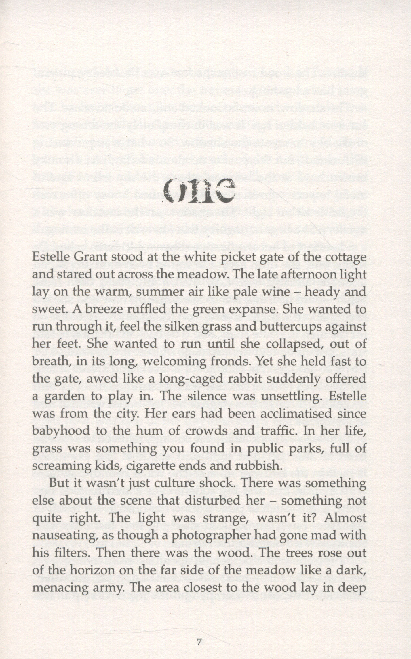 Estelle thinks that a stay in a remote cottage will give her the peace and quiet that she needs, but the nearby wood holds a terrible secret. Can she and her friend Sandor discover what's going on in the mysterious military lab before it's too late?