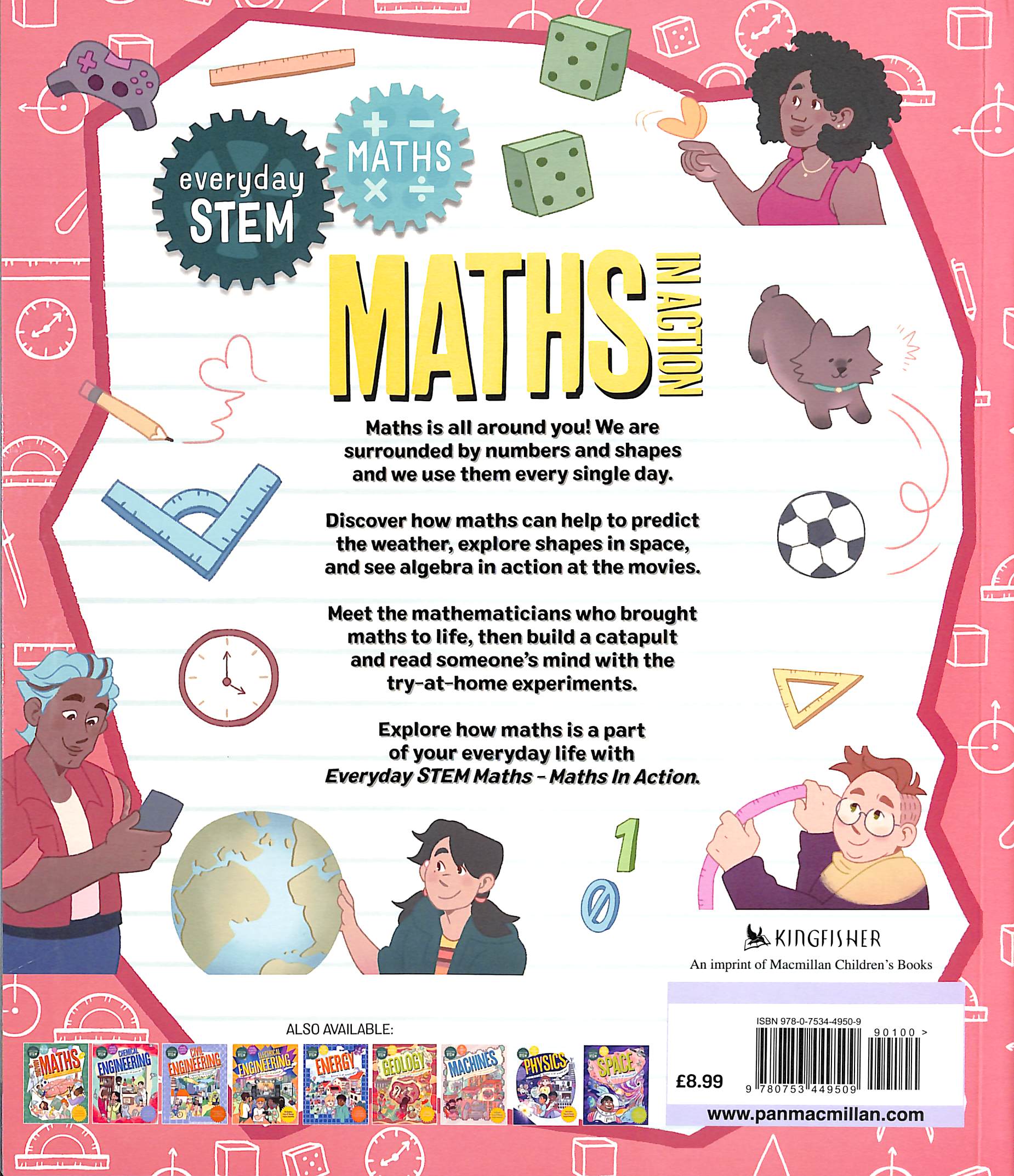 A "try this at home" section shows readers how to measure a building with just a pencil and create their own card game. With easy-to-understand text written by maths expert Lou Abercrombie, and lots of colourful artworks illustrated by Evelyn Rogers, plus photos and diagrams, readers can explore where we encounter maths and why it’s even important at all. The Everyday STEM series makes science relevant to tweens.