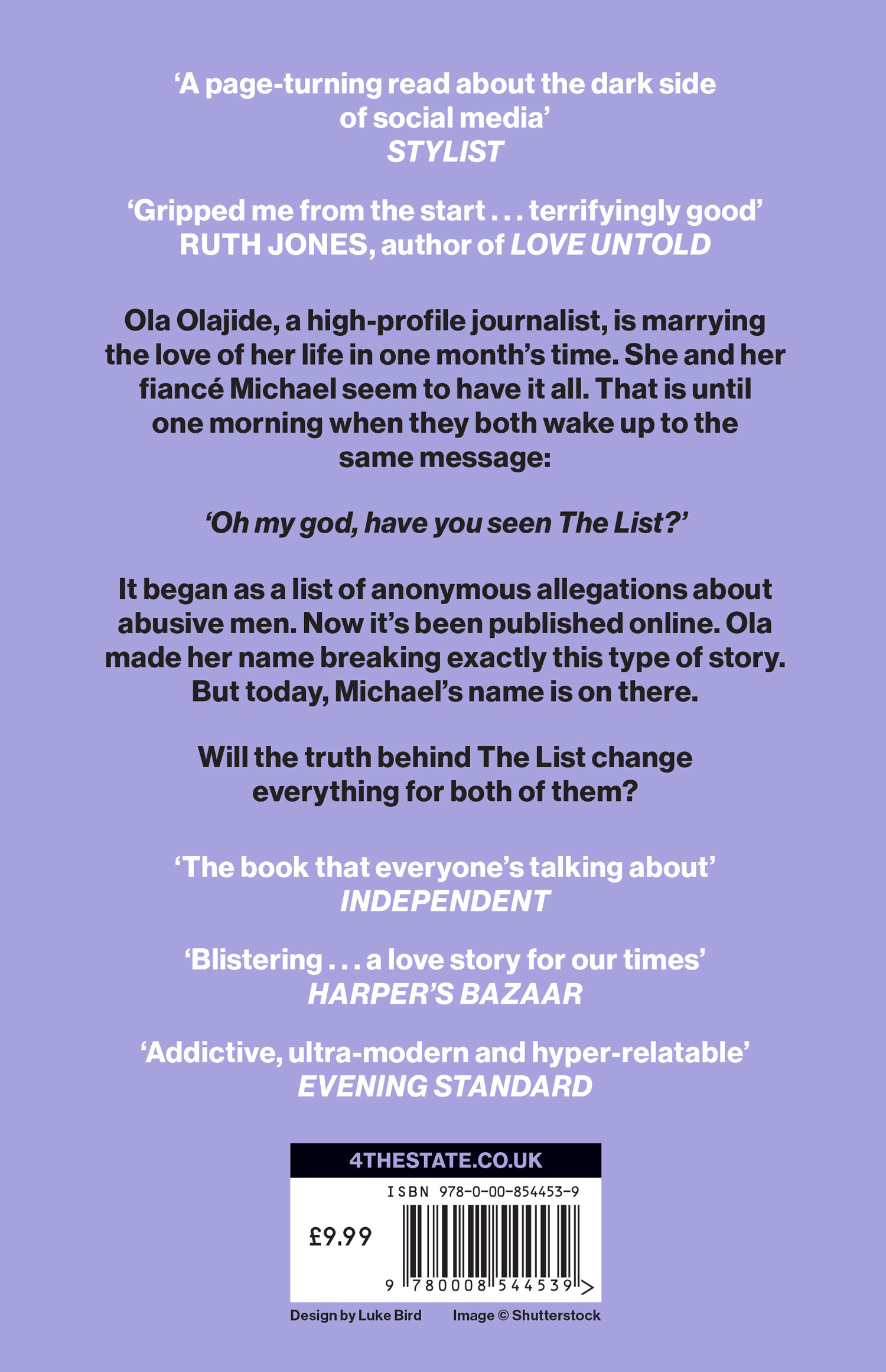 But today, Michael's name is on there. Will the truth behind The List change everything for both of them? An Evening Standard and The Times book of the year. *SOON TO BE A MAJOR TV SERIES* ‘Explosive … Every book club should read this’ SYMEON BROWN ‘The book that everyone’s talking about’ INDEPENDENT ‘Terrifyingly good' RUTH JONES READERS ARE OBSESSED WITH THE LIST: ‘WOW!