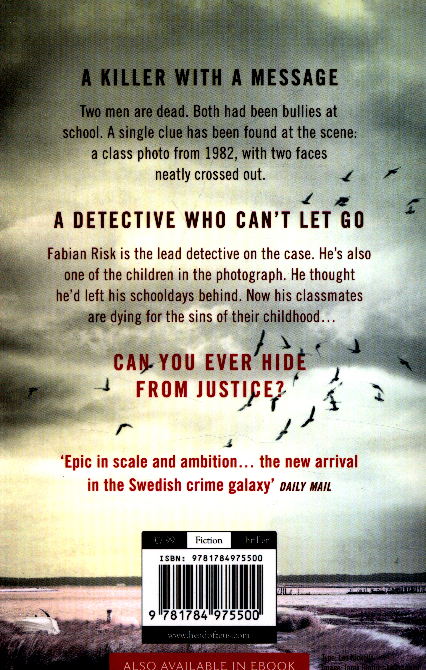 A DETECTIVE WHO CAN'T LET GO. Fabian Risk is the lead detective on the case. He's also one of the children in the photograph. As more people die, and more faces are crossed out, it becomes clear that a serial killer is targeting old classmates one by one.