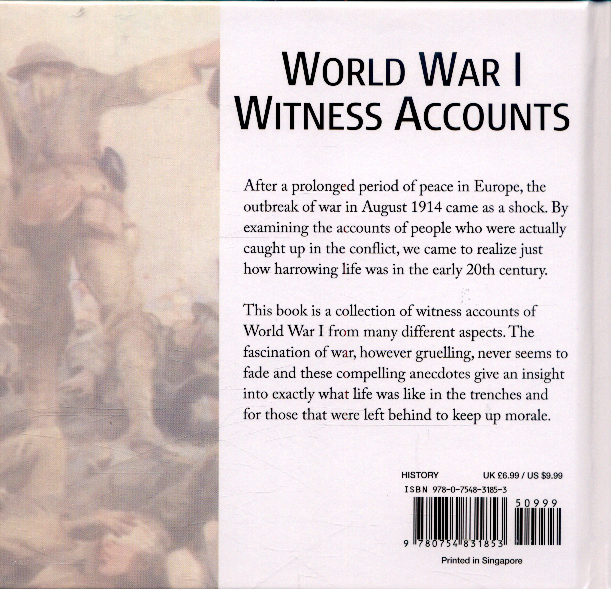 The book is a collection of over 100 witness accounts of World War I, featuring powerful and often moving quotes and stories describing what was happening.