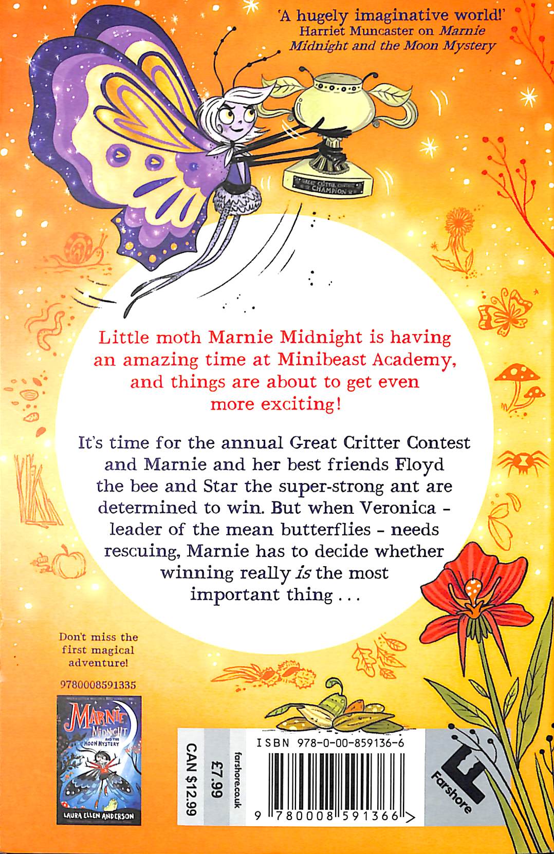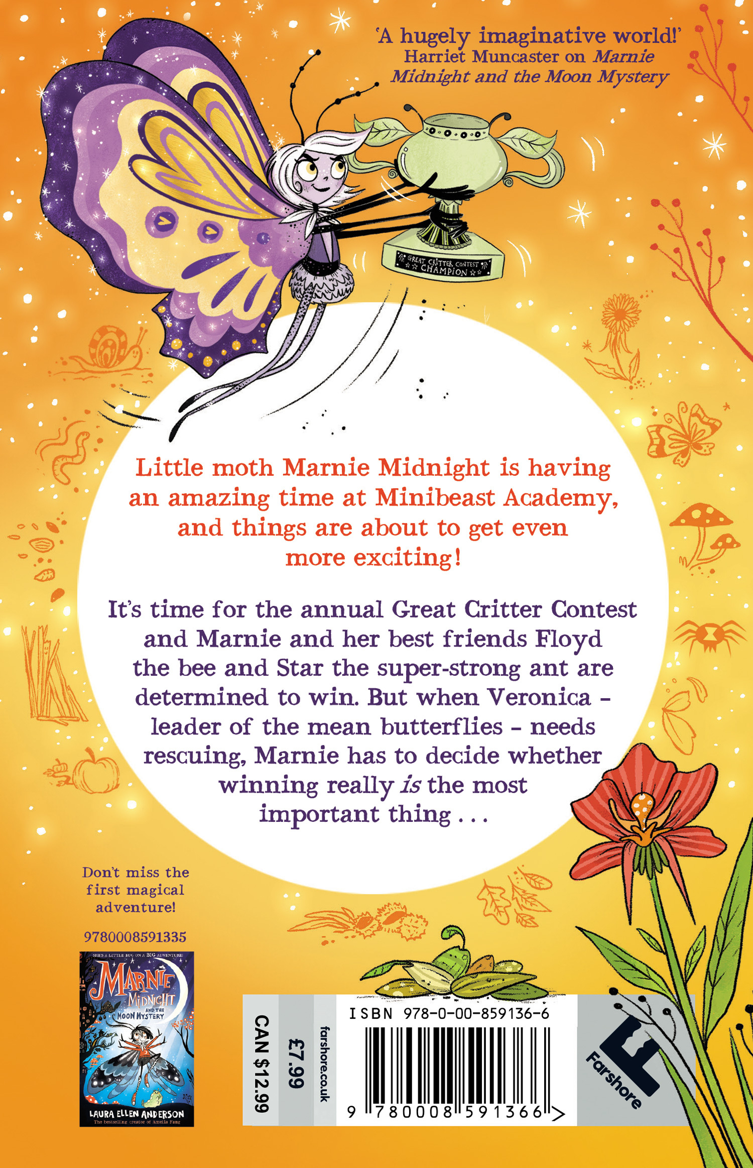 The second in a magical illustrated new young fiction series for children aged 7-9 from best-selling author and illustrator, Laura Ellen Anderson! Marnie Midnight is a little moth with BIG dreams! Marnie is having so much fun at Minibeast Academy, a school for bugs tucked into a giant tree at the bottom of the museum gardens. And this term it's time for something really exciting – the Great Critter Contest! The contest sees minibug students set off to explore the school in teams, searching for clues.