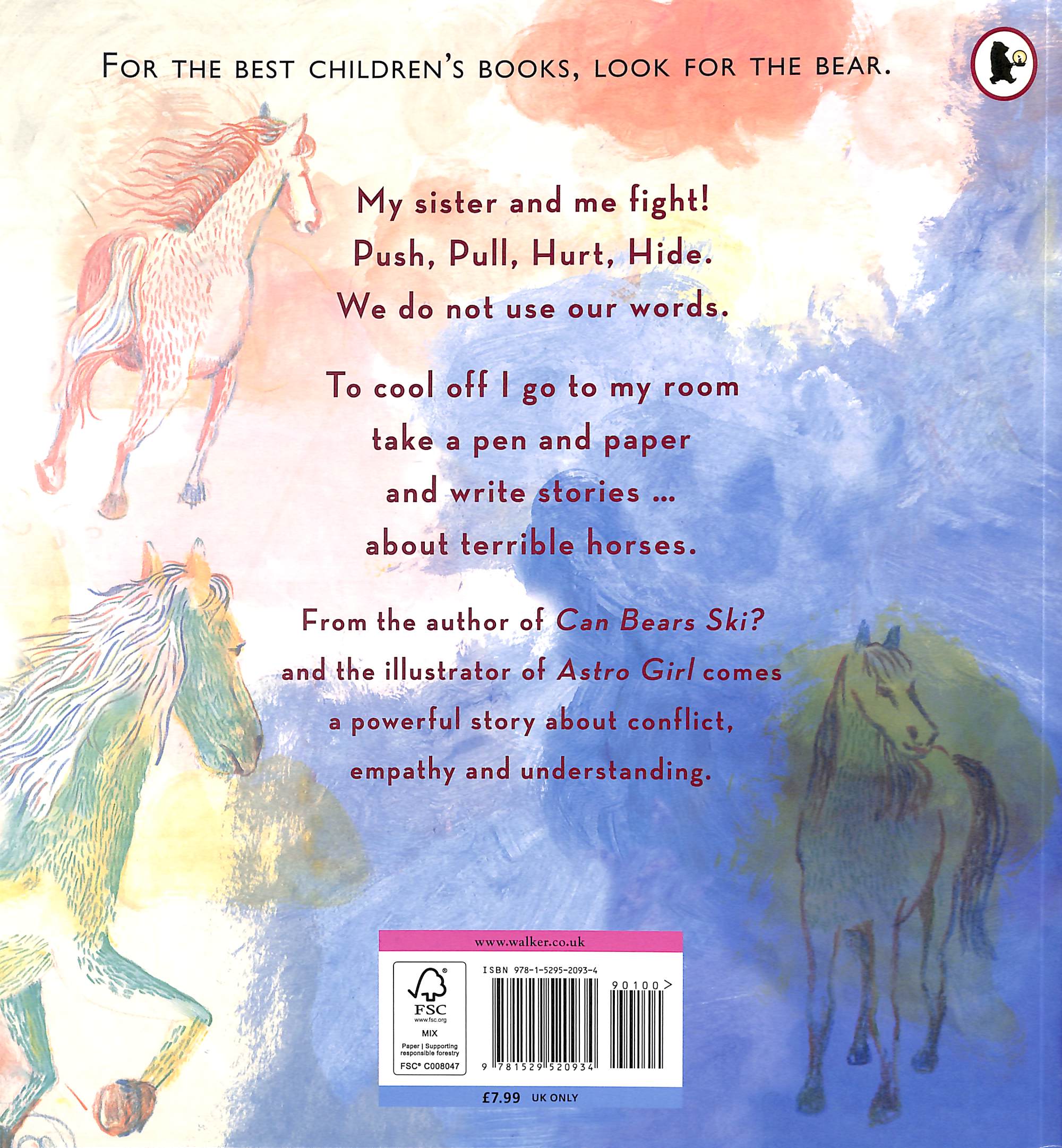 "A poignant, expressive picture book about fraught sibling relationships." - The guardian"Both big and little siblings will see a bit of themselves in this exquisite equine-saturated tale." - Kirkus ReviewsSHORTLISTED for The Oscar's Book Prize 2025SHORTLISTED for the IBC Awards 2025My sister and me fight! / Push Pull Hurt Hide. / We would not use our words. This little boy does not get on with his sister. They misunderstand each other, struggle to communicate, and they fight.