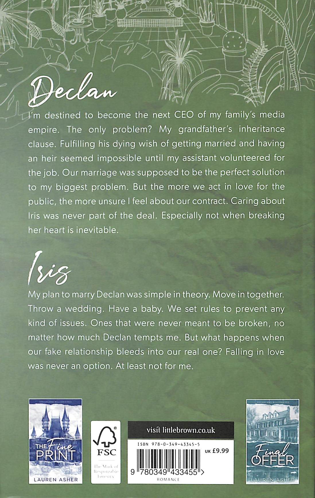 Couldn't get enough of The Fine Print?Fall in love with the next book in Lauren Asher's hot and sexy Dreamland Billionaires series . . . DeclanI'm destined to become the next CEO of my family's media empire. The only problem? My grandfather's inheritance clause. Fulfilling his dying wish of getting married and having an heir seemed impossible until my assistant volunteered for the job. Our marriage was supposed to be the perfect solution to my biggest problem. But the more we act in love for the public, the more unsure I feel about our contract. Caring about Iris was never part of the deal. Especially not when breaking her heart is inevitable. IrisMy plan to marry Declan was simple in theory. Move in together. Throw a wedding. Have a baby. We set rules to prevent any kind of issues. Ones that were never meant to be broken, no matter how much Declan tempts me. But what happens when our fake relationship bleeds into our real one?Falling in love was never an option. At least not for me. Terms and Conditions is the second book in a series of spicy standalone novels featuring three billionaire brothers.