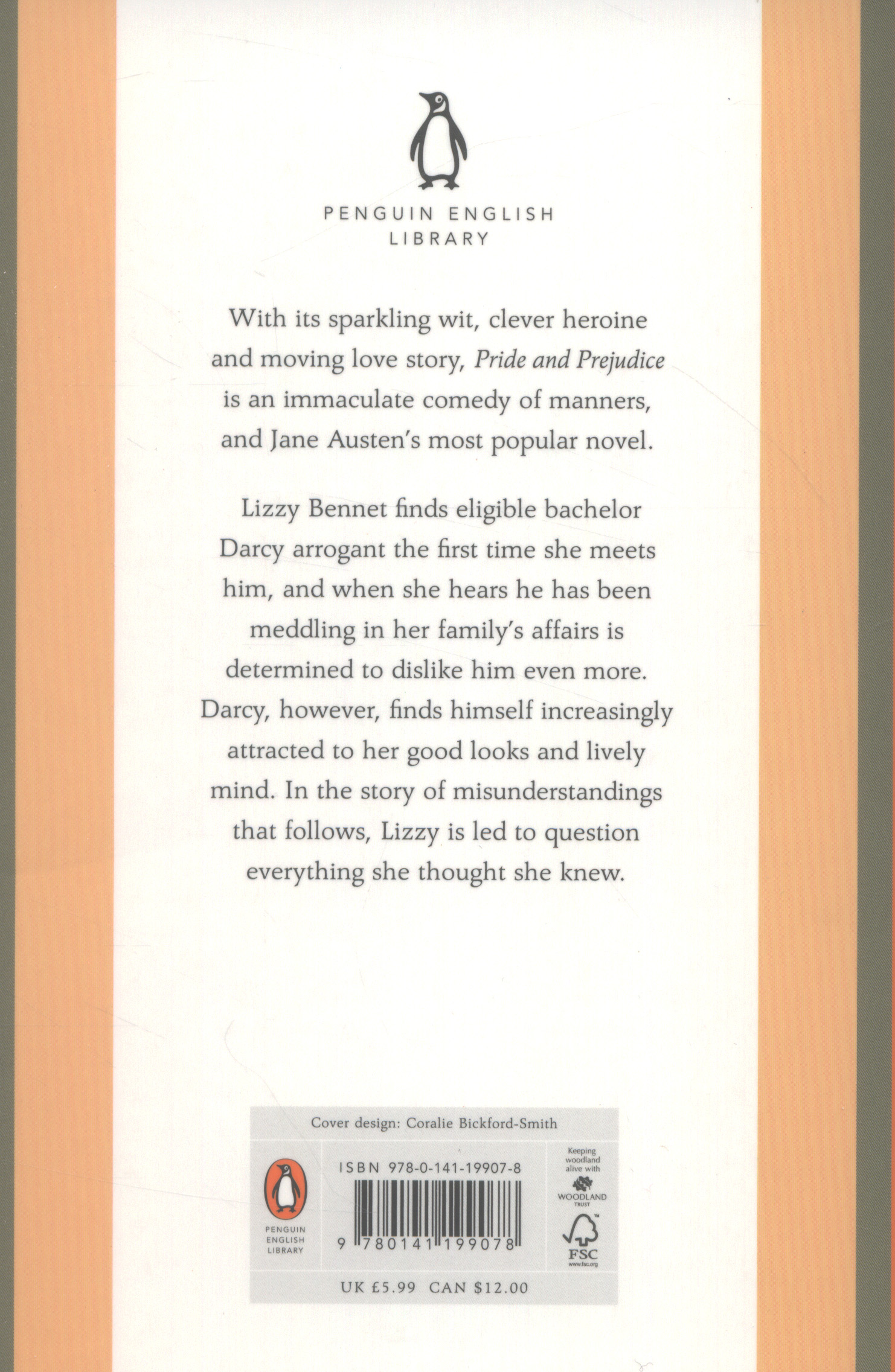 The Penguin English Library Edition of Pride and Prejudice by Jane Austen'No sooner had he made it clear to himself and his friends that she had hardly a good feature in her face, than he began to find it was rendered uncommonly intelligent by the beautiful expression of her dark eyes ...'When Elizabeth Bennet first meets eligible bachelor Fitzwilliam Darcy, she thinks him arrogant and conceited; he is indifferent to her good looks and lively mind.