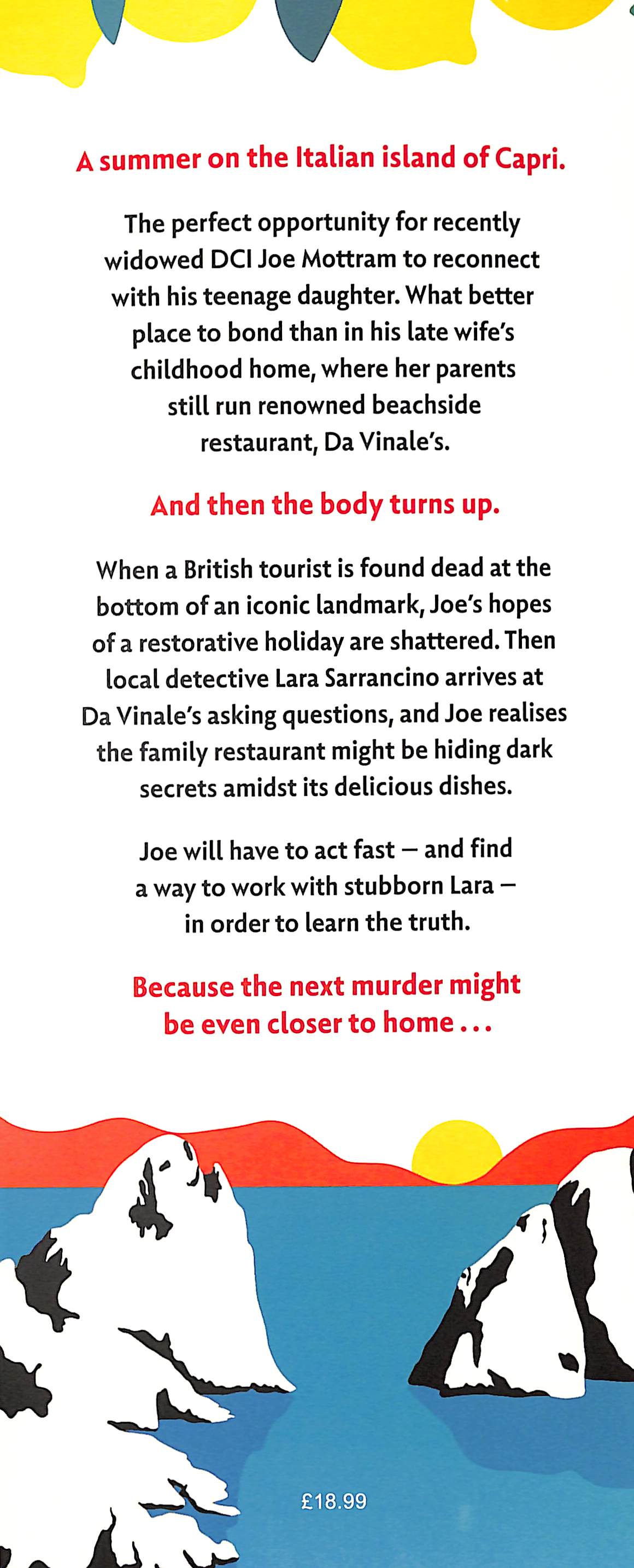 What better place to bond than in his late wife’s childhood home where her parents still run renowned beachside restaurant, Da Vinale's. And then the body turns up. When a British tourist is found dead at the bottom of an iconic landmark, Joe’s hopes of a restorative holiday are shattered.