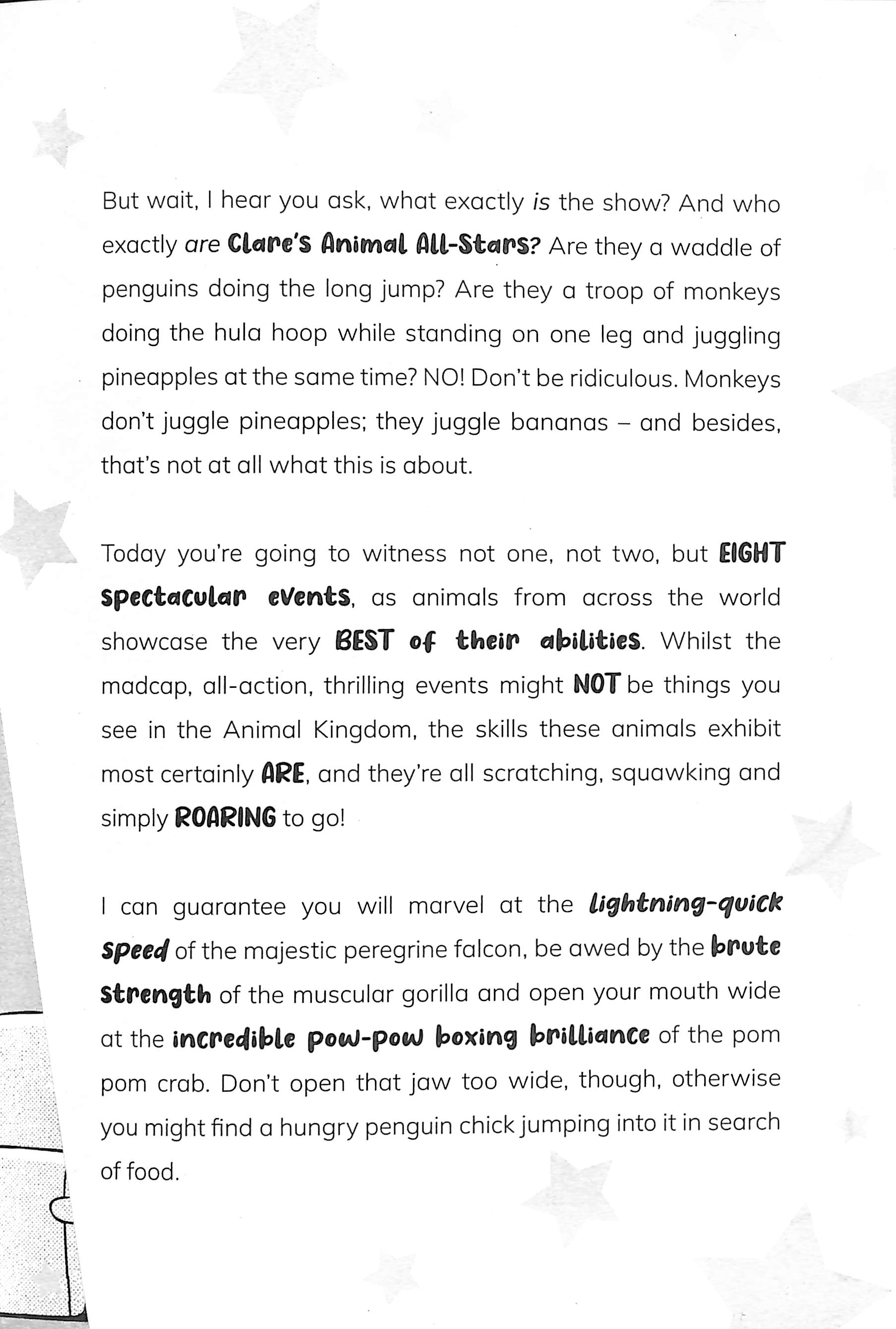 A HILARIOUS GUIDE TO THE ANIMAL KINGDOM, WHERE YOUR FAVOURITE ANIMALS GO HEAD-TO-HEAD - BY BESTSELLING AUTHOR AND COMMENTATOR CLARE BALDING"Truly engrossing... a very enjoyable read" - PA review"The perfect gift for sport and animal lovers" - Lancashire Evening PostWho would win in a race . . . the Australian tiger beetle or the peregrine falcon?Who is the strongest . . . the extraordinary ant or the grumpy gorilla?Who has the best superpower . . . the headless cockroach or the jet-powered squid?From speed, agility and strength to super-sensory prowess, these animal all-stars will compete to set incredible animal records.